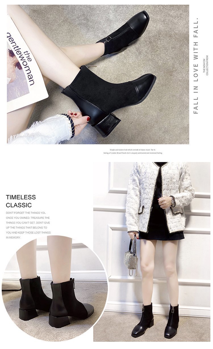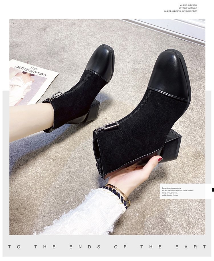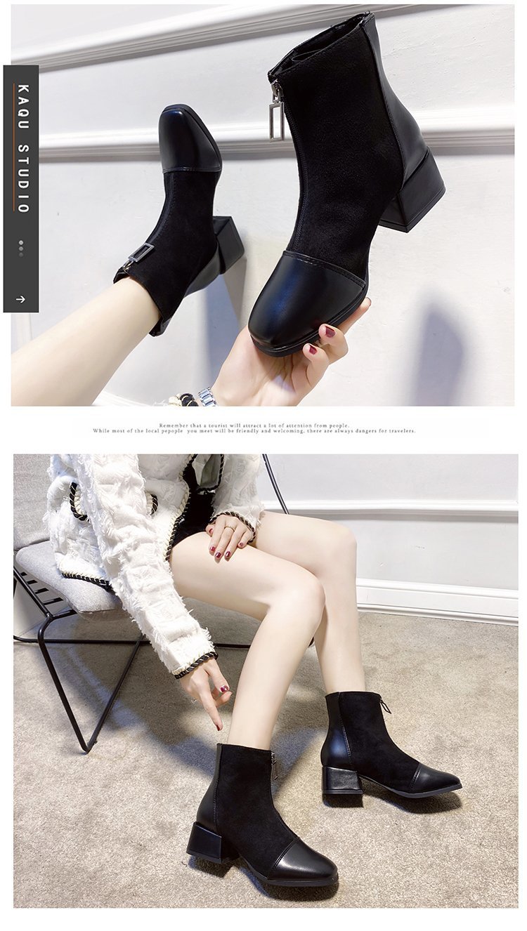 새로운 스웨이드 여성 신발 2020 가을 겨울 한국 스타일 유행 앞 지퍼 미드힐 짧은 부츠 여성 한국 스타일 여성 캐주얼 여성 부츠스토어 가기