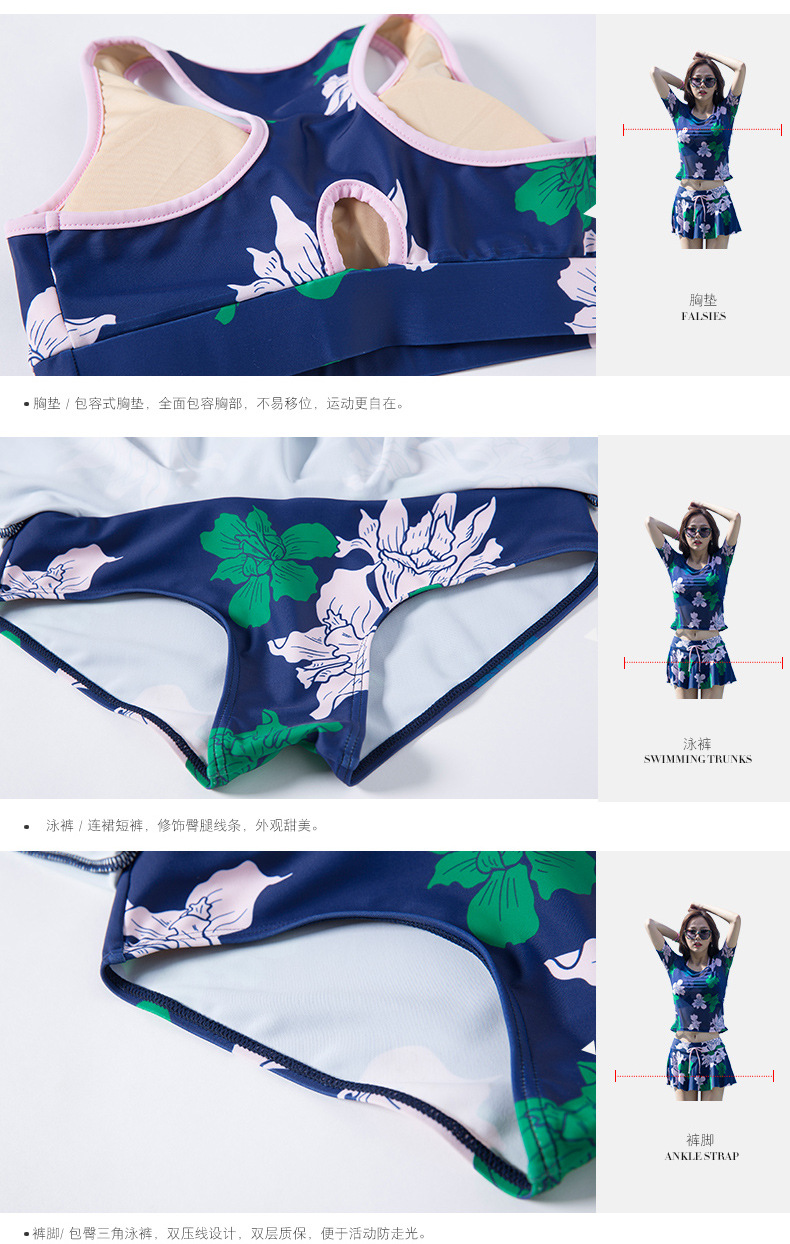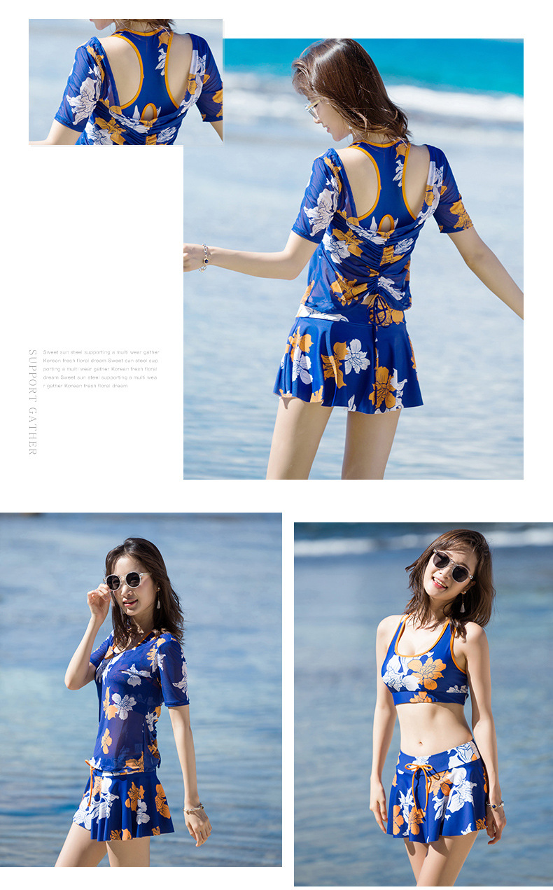 Sanqi 수영복 여자의 비키니 쓰리 피스 세트 작은 가슴 푸시 업 섹시 슬리밍 보수적 인 한국 온천 샤넬 스타일 블라우스