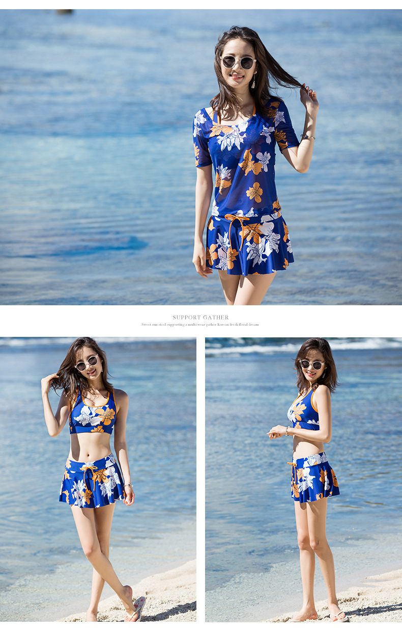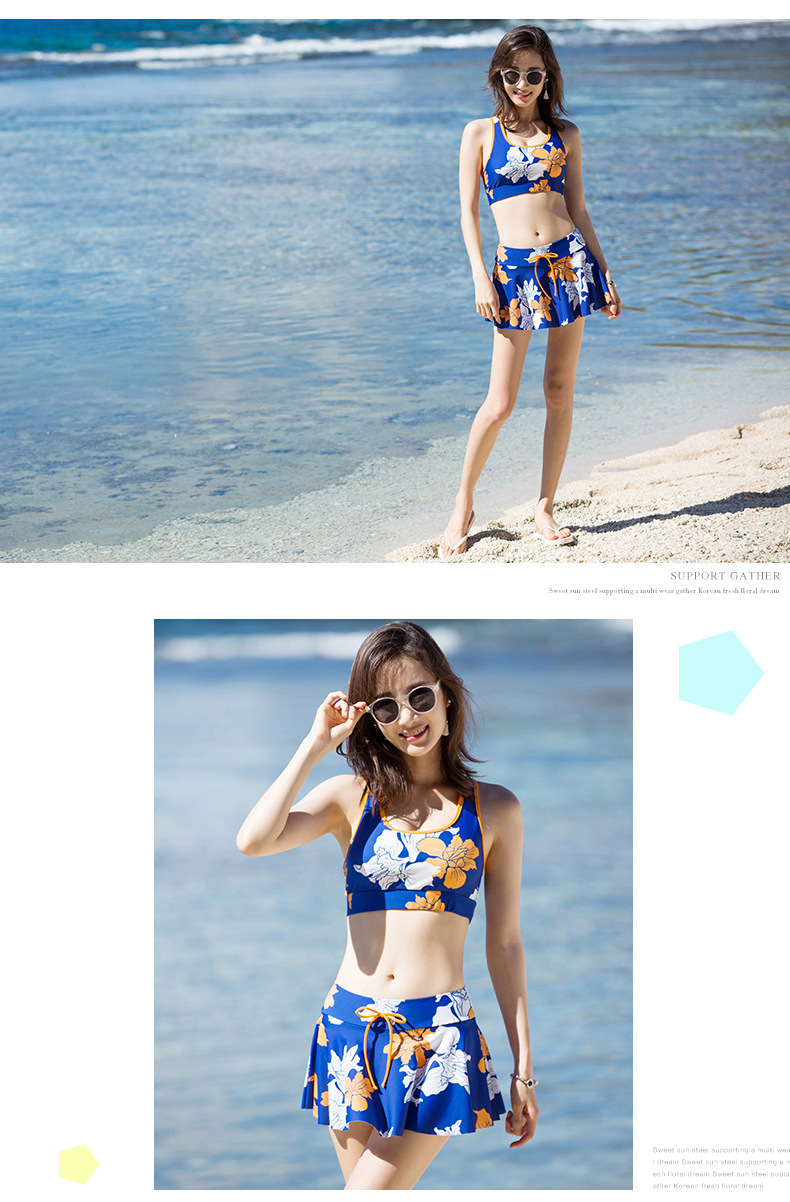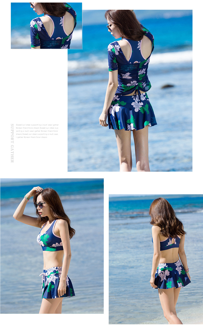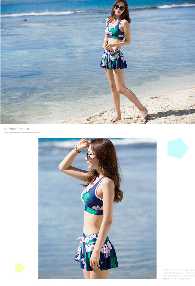 Sanqi 수영복 여자의 비키니 쓰리 피스 세트 작은 가슴 푸시 업 섹시 슬리밍 보수적 인 한국 온천 샤넬 스타일 블라우스스토어 가기