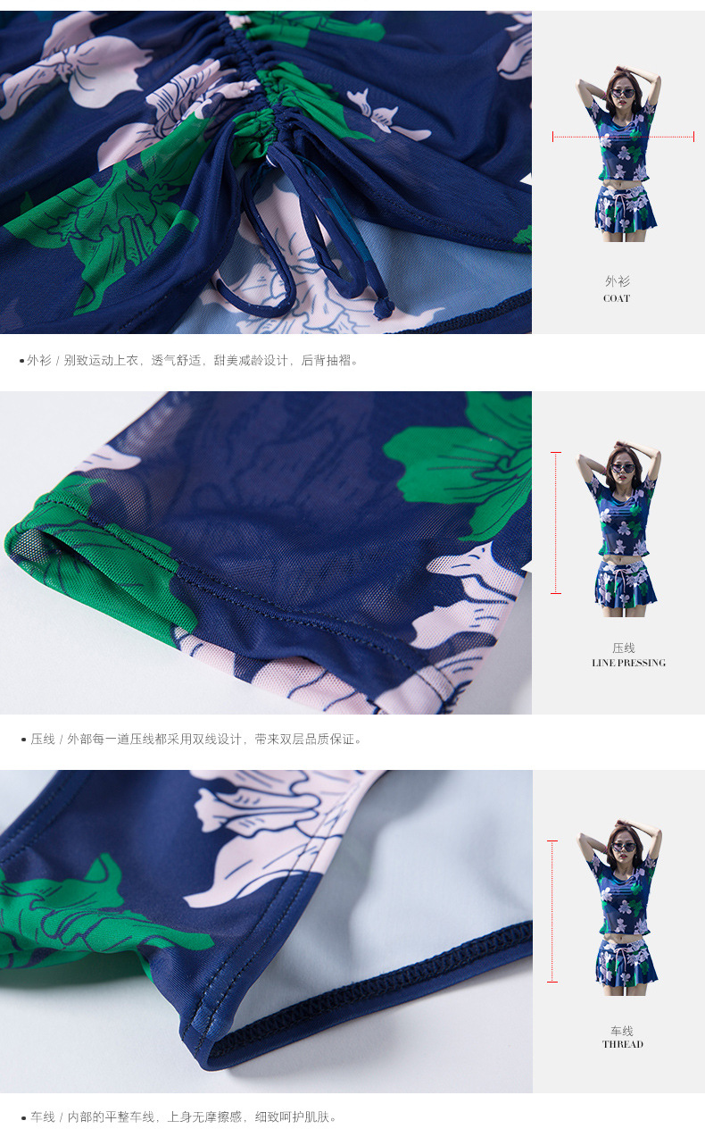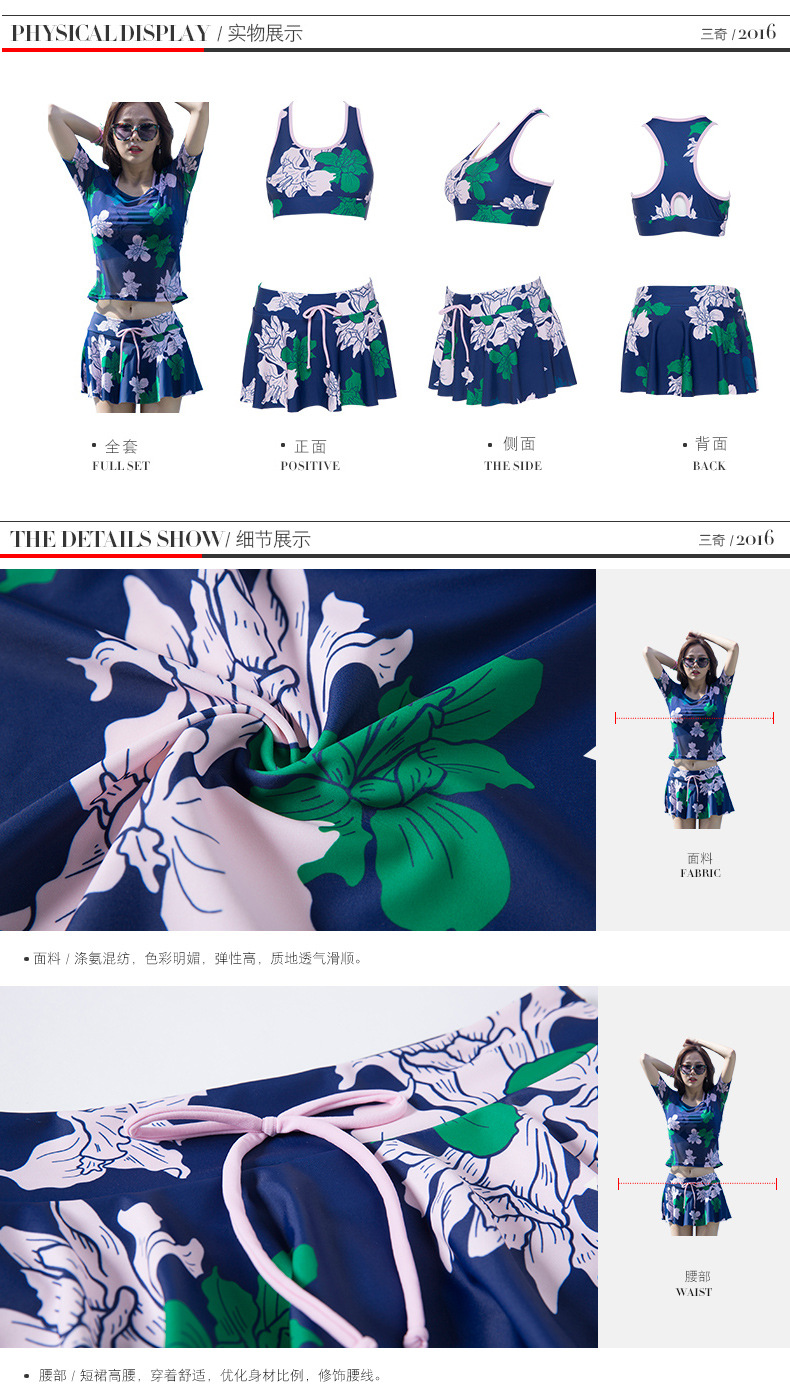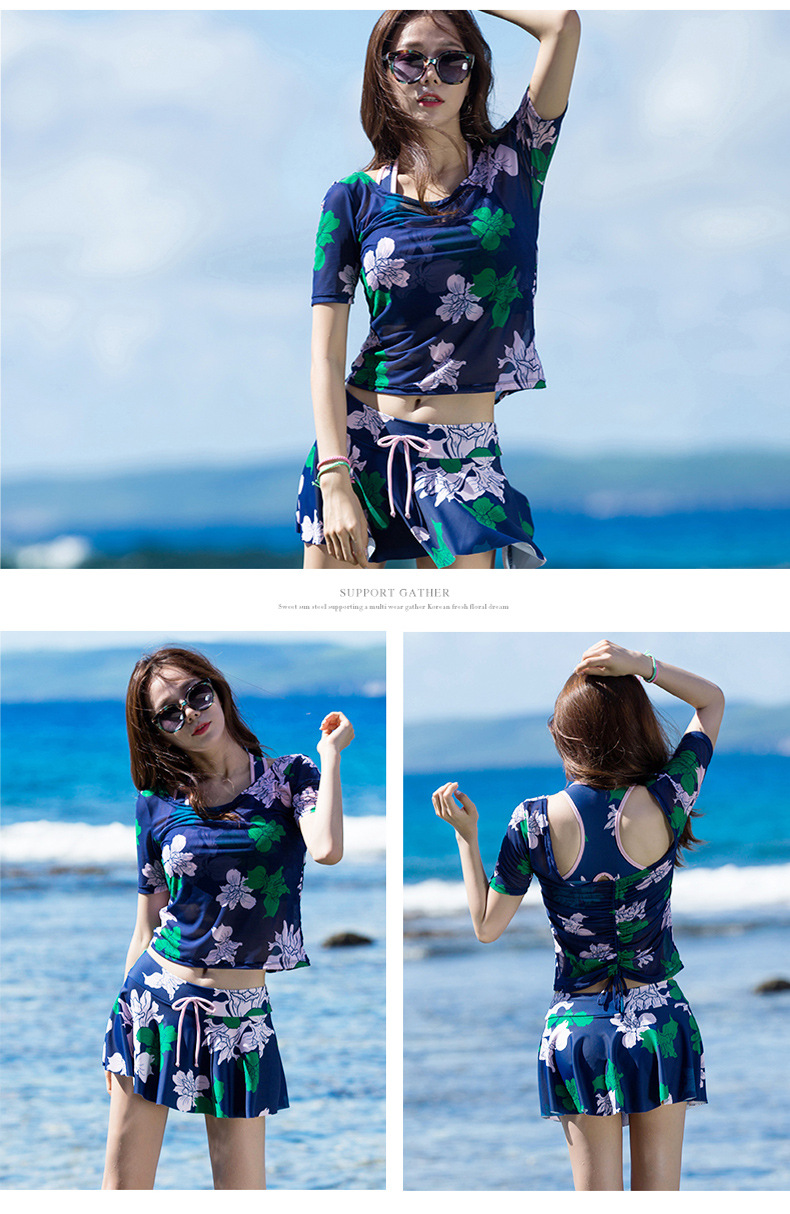 Sanqi 수영복 여자의 비키니 쓰리 피스 세트 작은 가슴 푸시 업 섹시 슬리밍 보수적 인 한국 온천 샤넬 스타일 블라우스스토어 가기