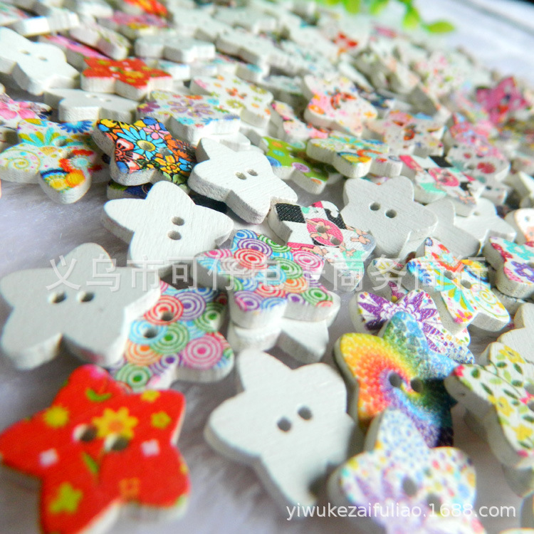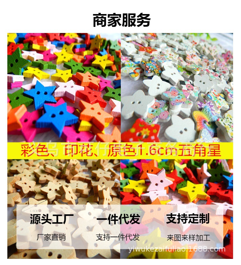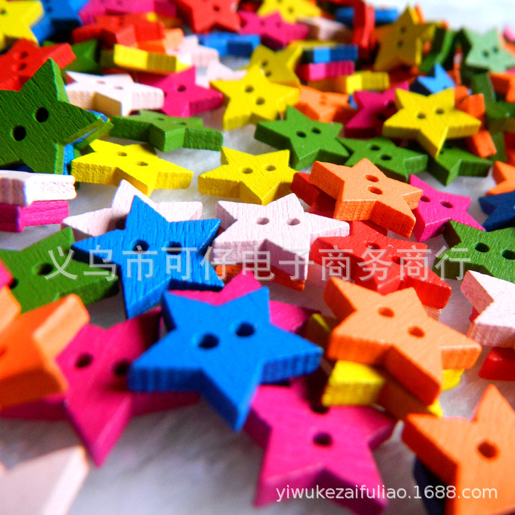 어린이 DIY 수제 컬러 나무 단추 색상 기본 색상 나무 별 5 개 유치원 수제 재료스토어 가기