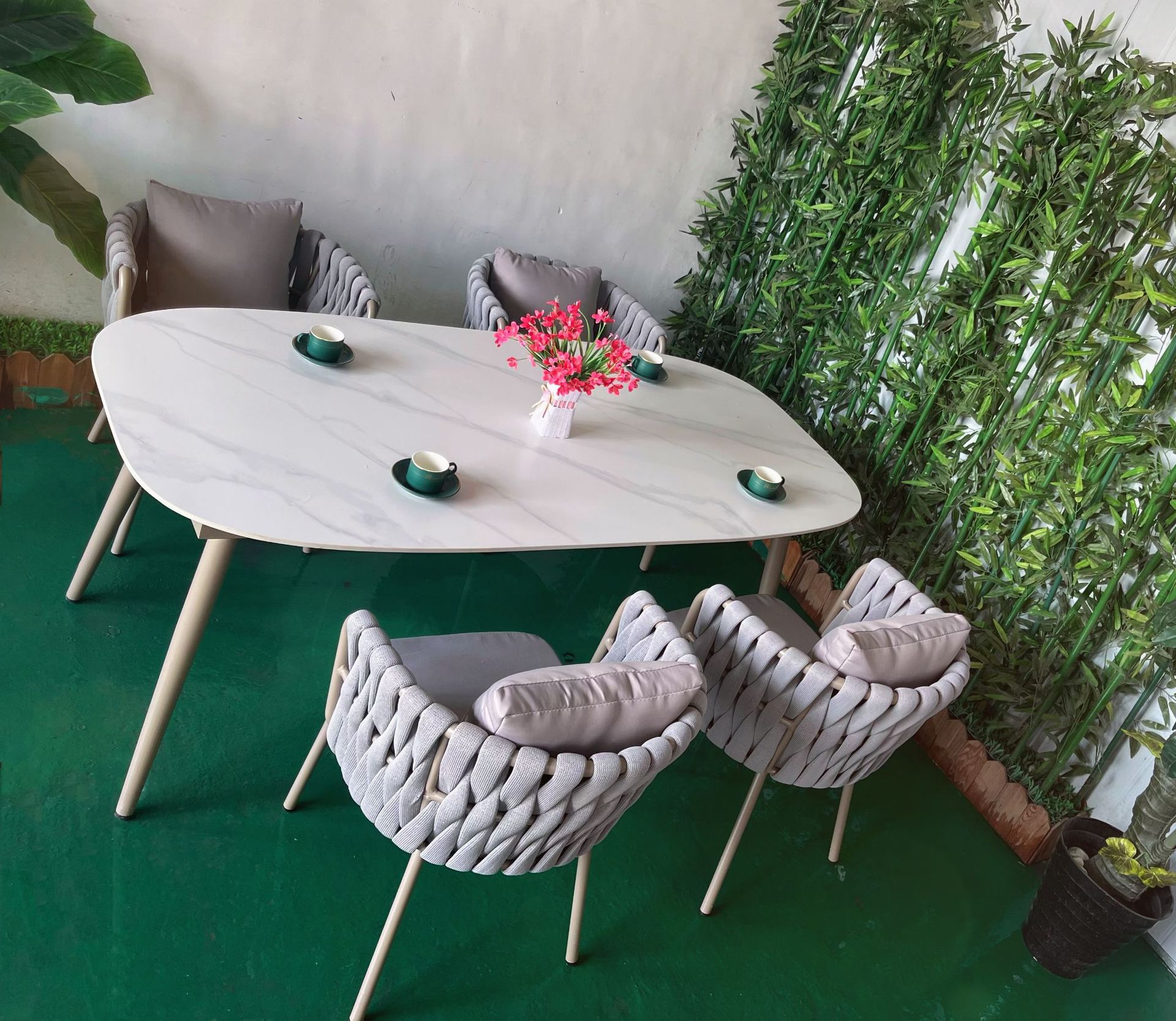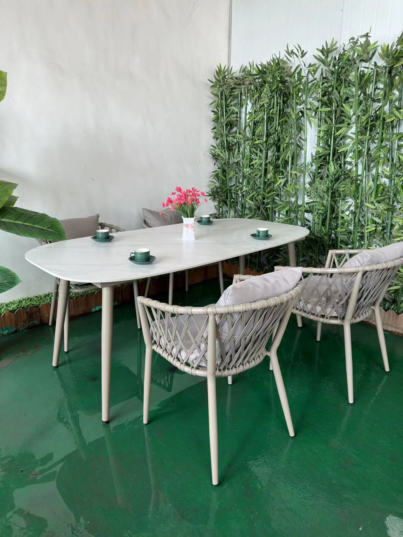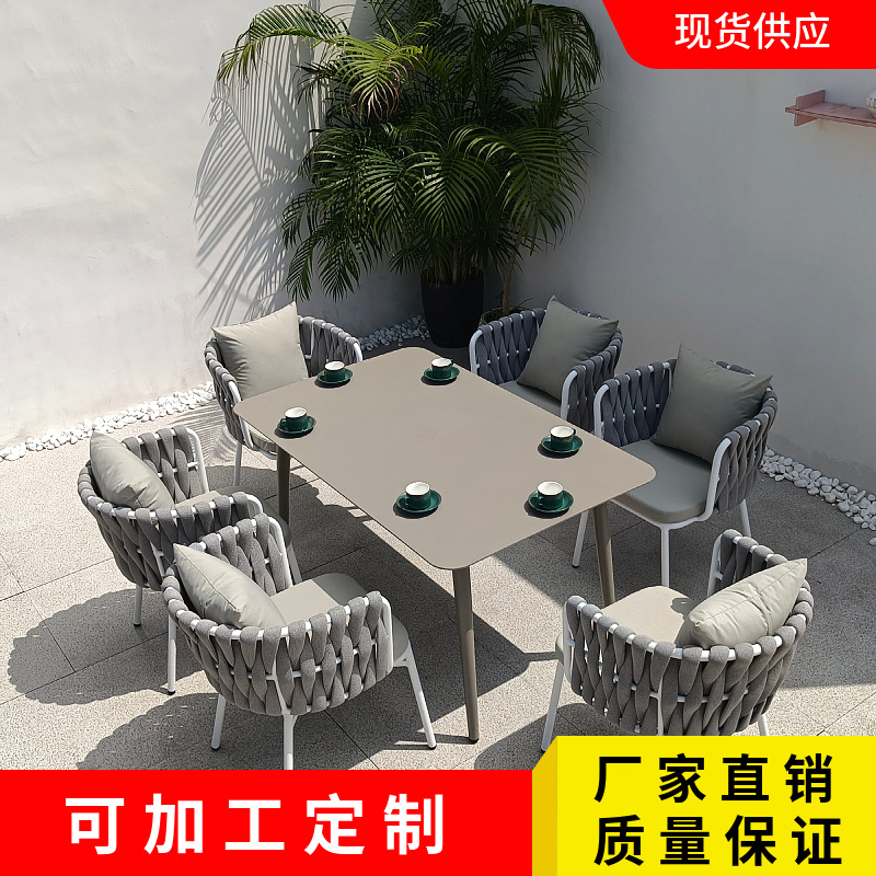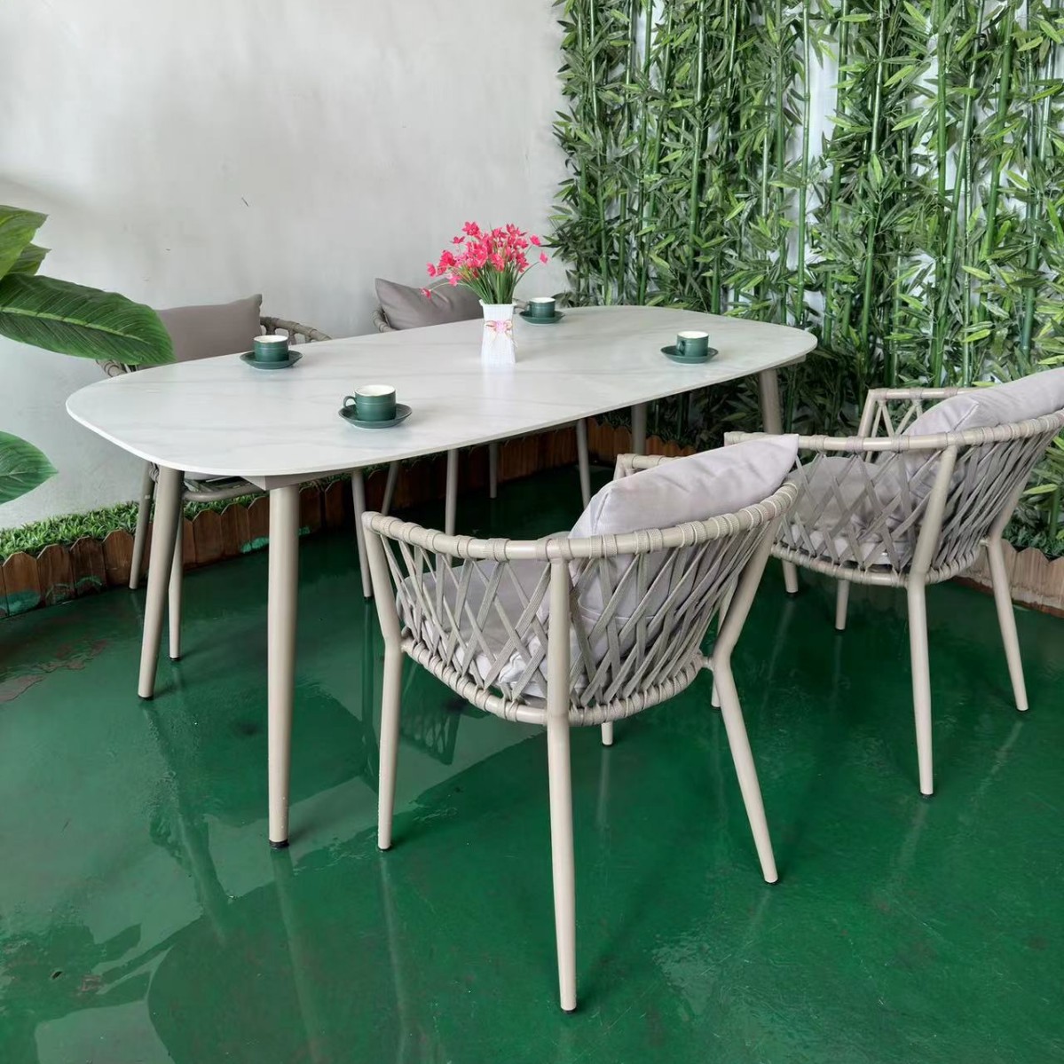 야외 바위 보드 발코니 티 테이블과 의자 안뜰 정원 레저 테이블과 의자 조합 북유럽 야외 테이블과 의자 당겨 로프 메이커 의자