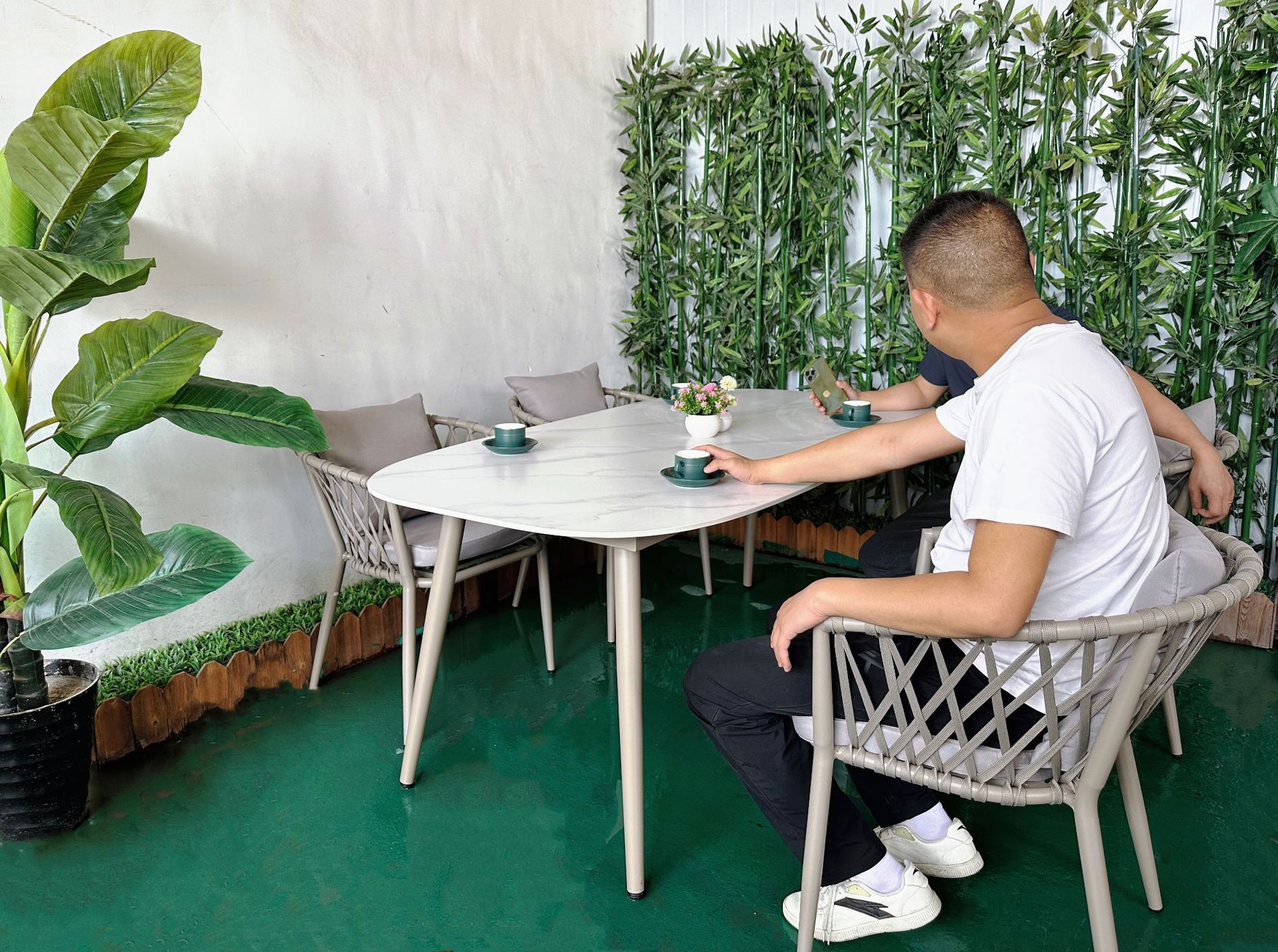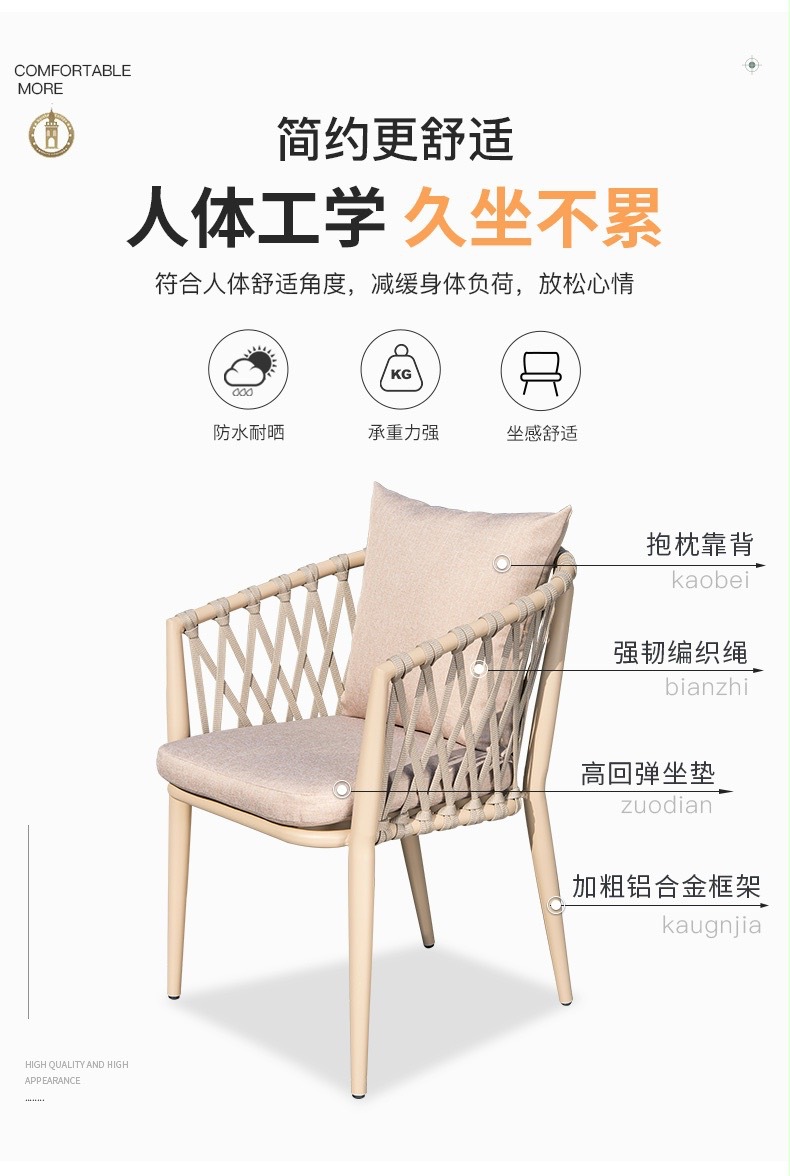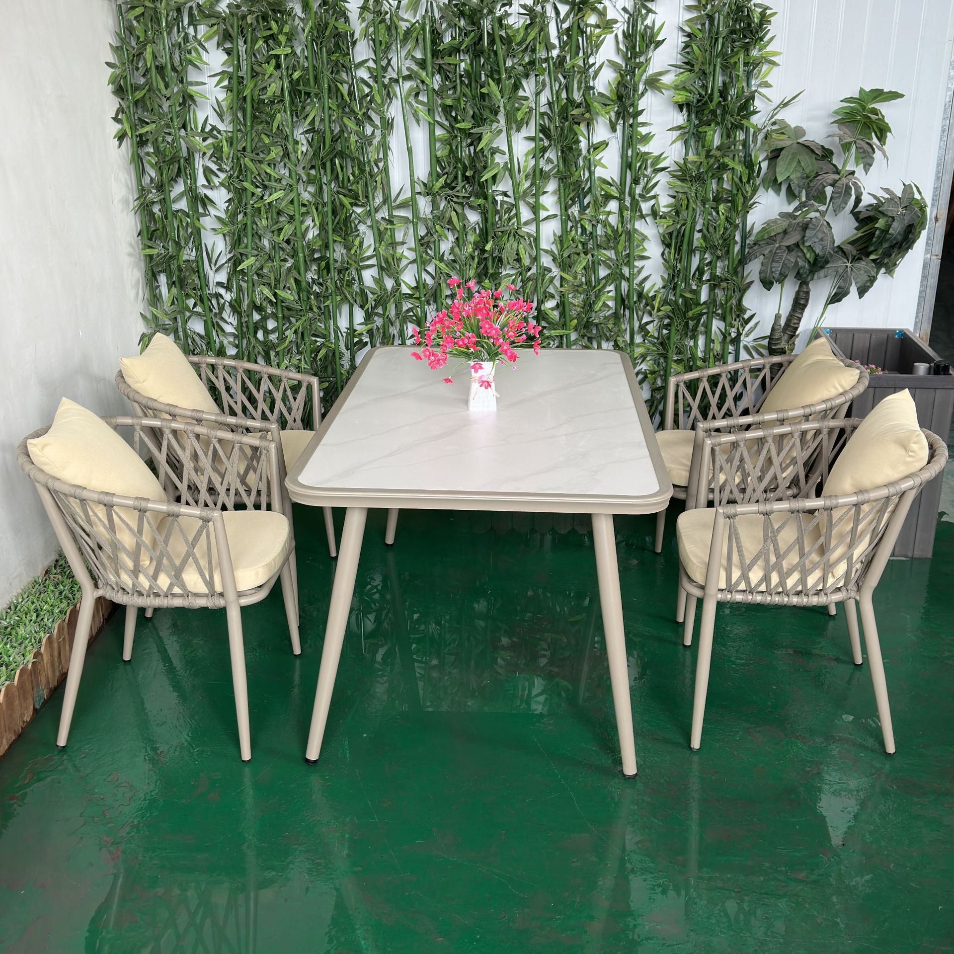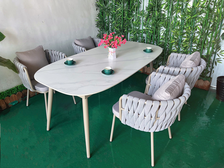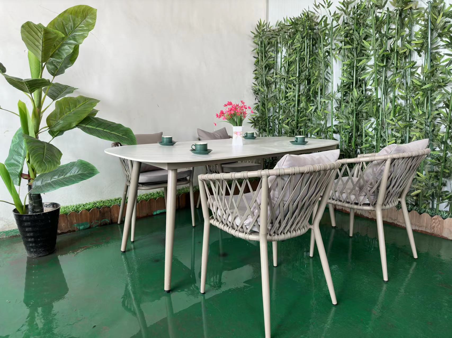 야외 바위 보드 발코니 티 테이블과 의자 안뜰 정원 레저 테이블과 의자 조합 북유럽 야외 테이블과 의자 당겨 로프 메이커 의자