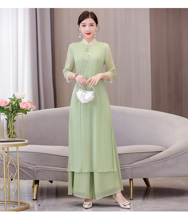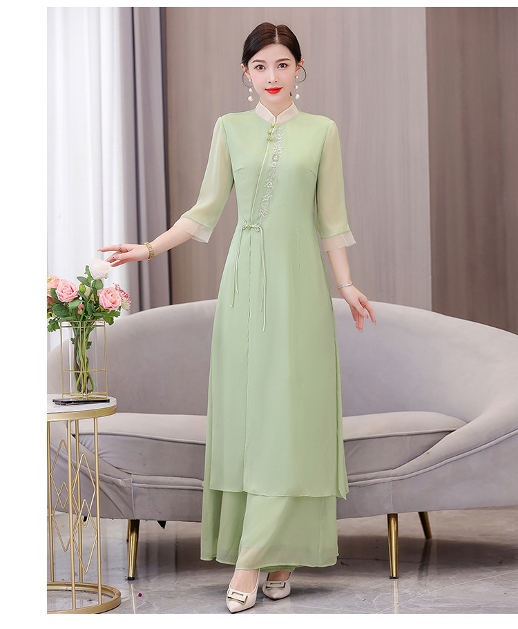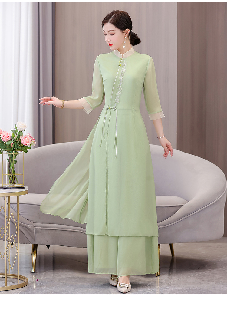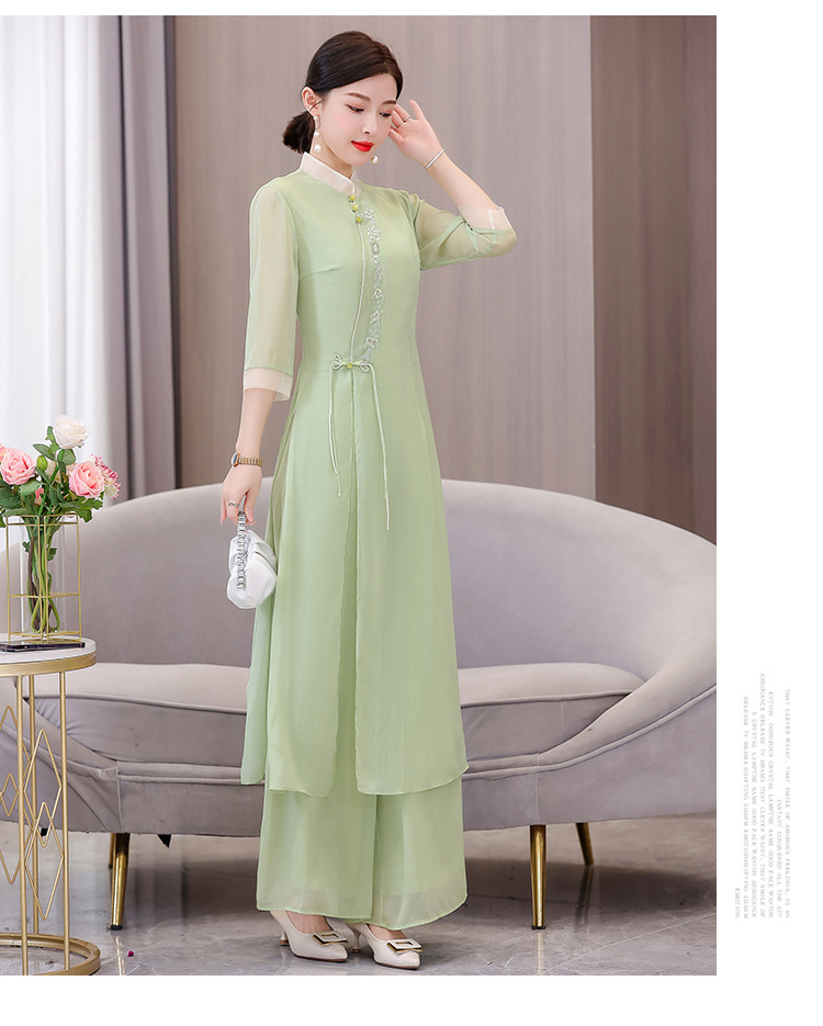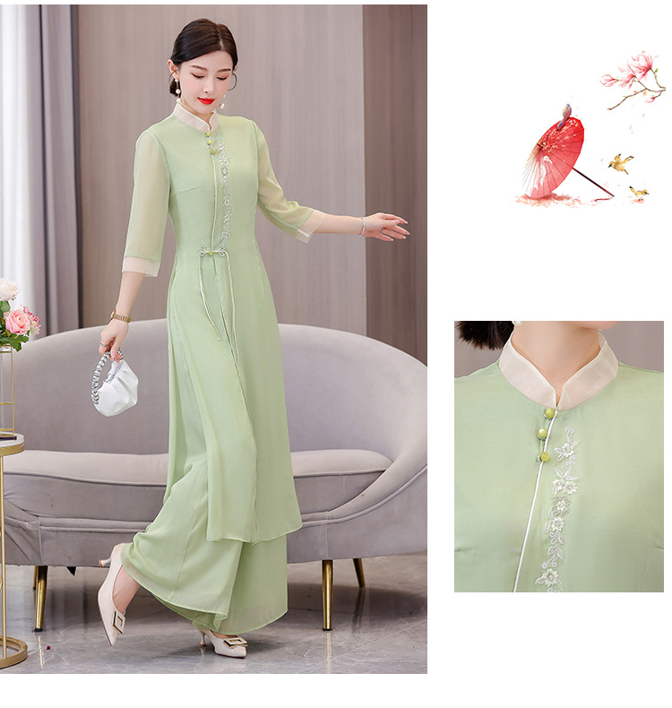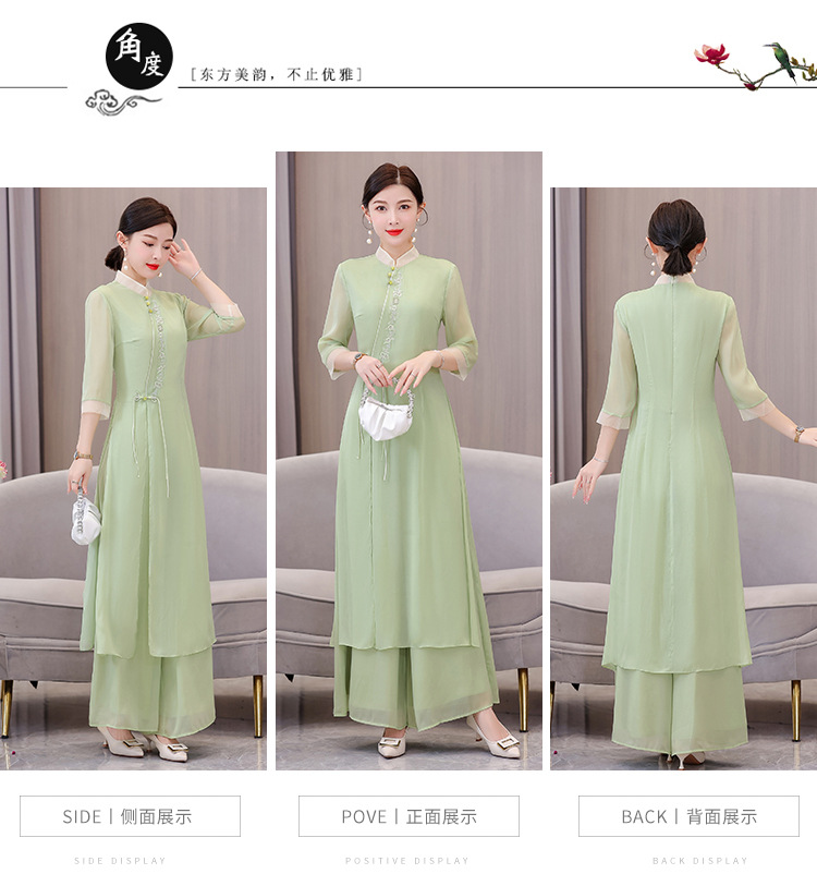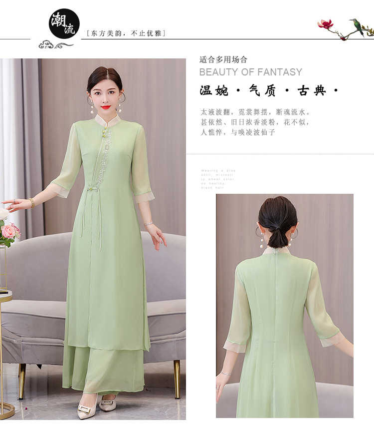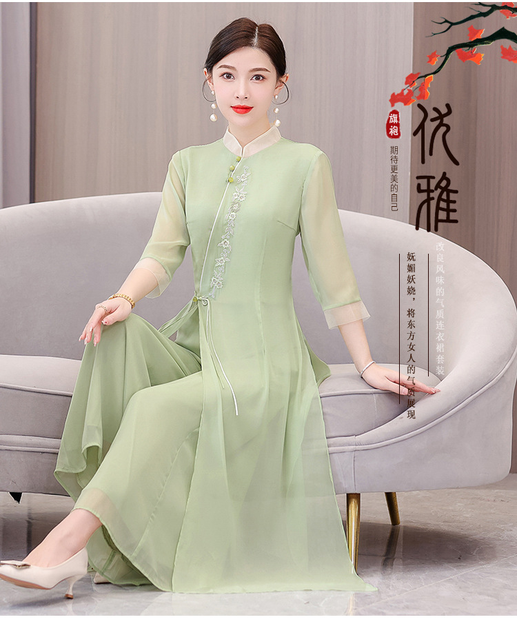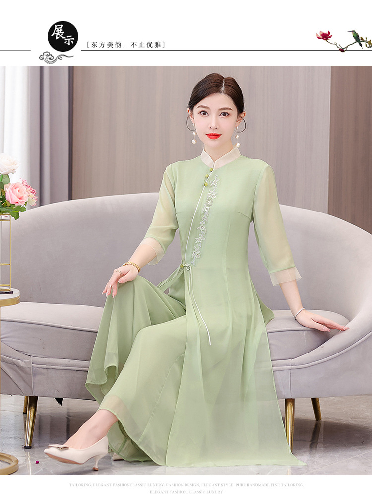 9112 진짜 샷 봄과 여름 개선 원피스 여자의 중국 스타일 치파오 선 세트 요정 스타일 복고풍 한푸 차 의류스토어 가기