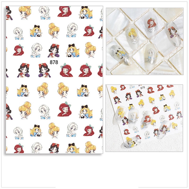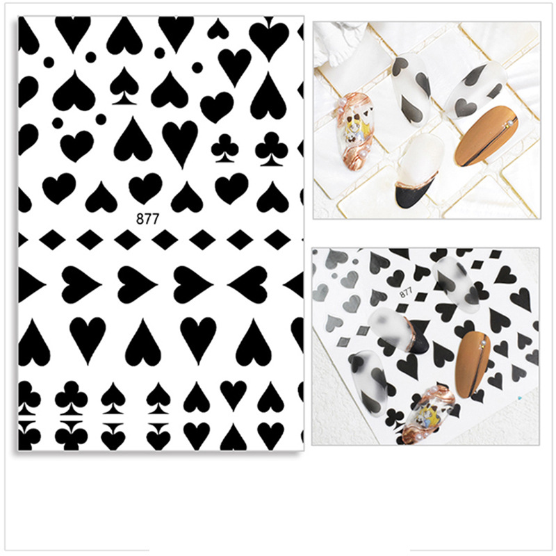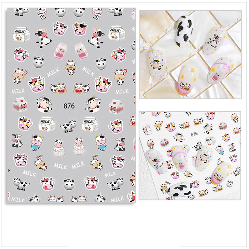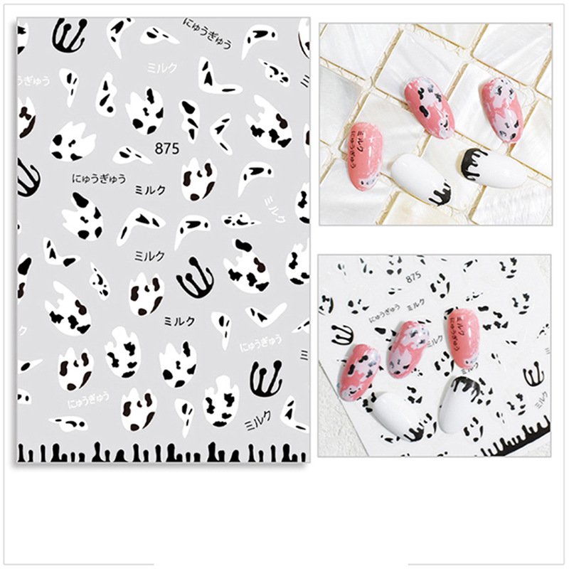 우유 소 패턴 소녀 심장 네일 아트 스티커 흑백 3d 네일 장식 데칼 작은 빨간 책 만화 공주와 함께 큰스토어 가기