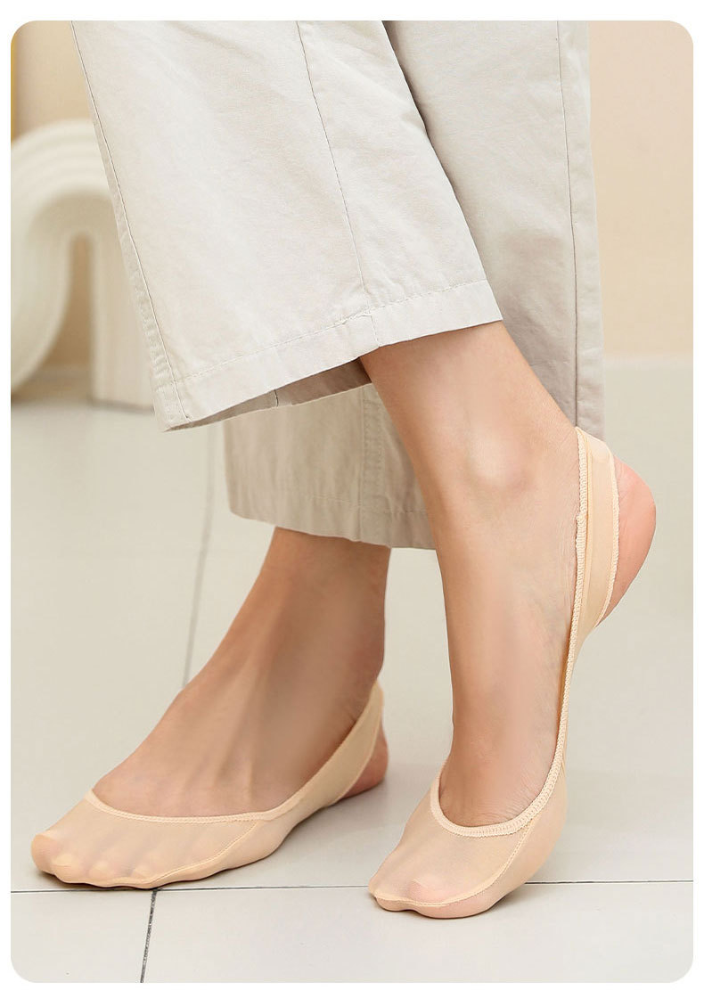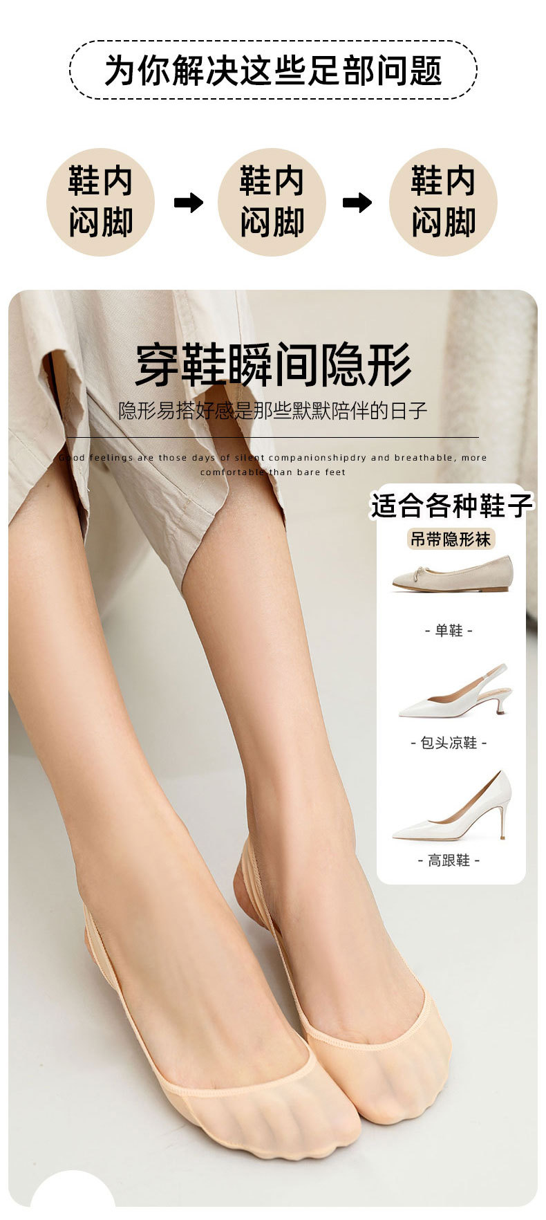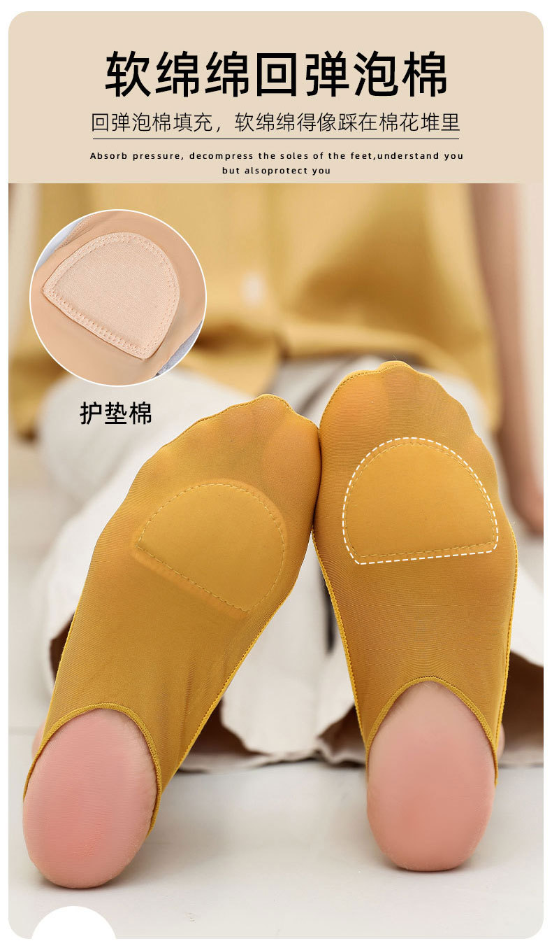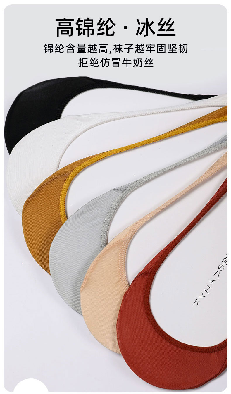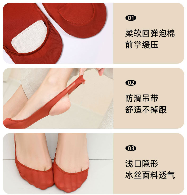아이스 실크 스폰지 패드 하프 팜 양말 아이스 실크 보이지 않는 양말 여성용 중공 울트라 얕은 입은 여성용 보트 양말 공장 재고스토어 가기