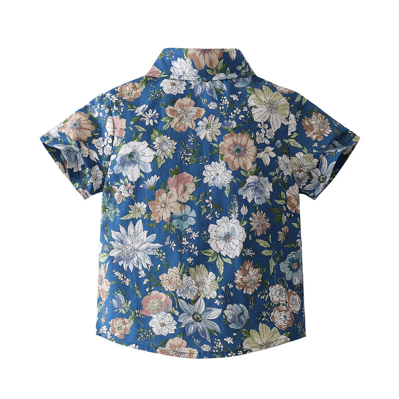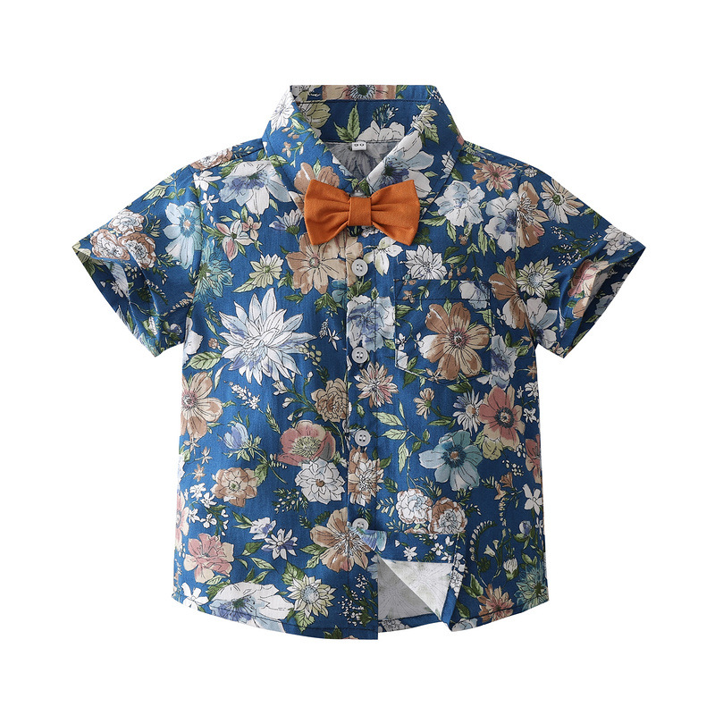 소년 여름 나비 넥타이 꽃 무늬 셔츠 세트 2023 새로운 중소 어린이 반팔 캐주얼 아동 의류 제조 업체 재고스토어 가기