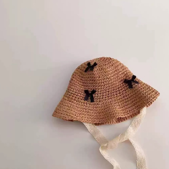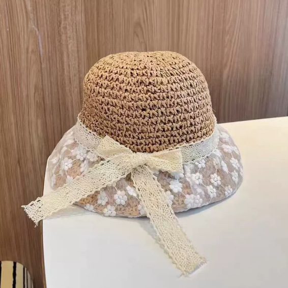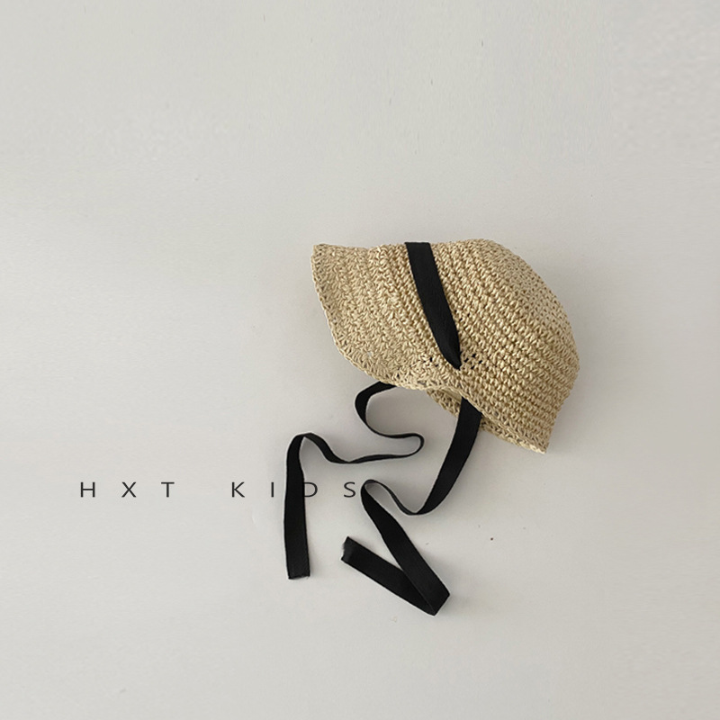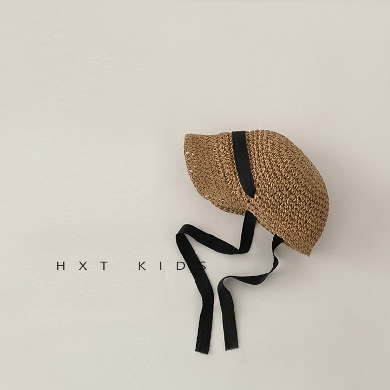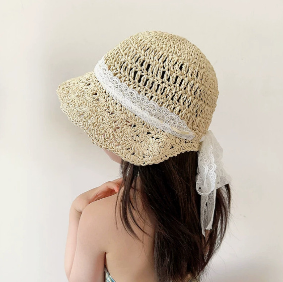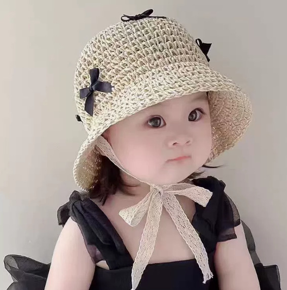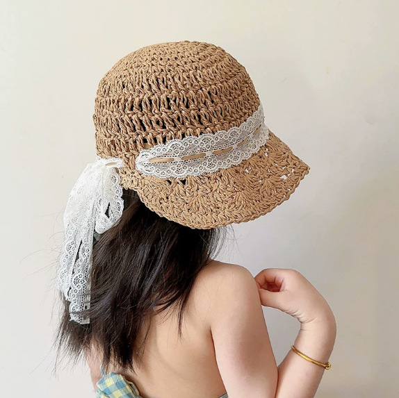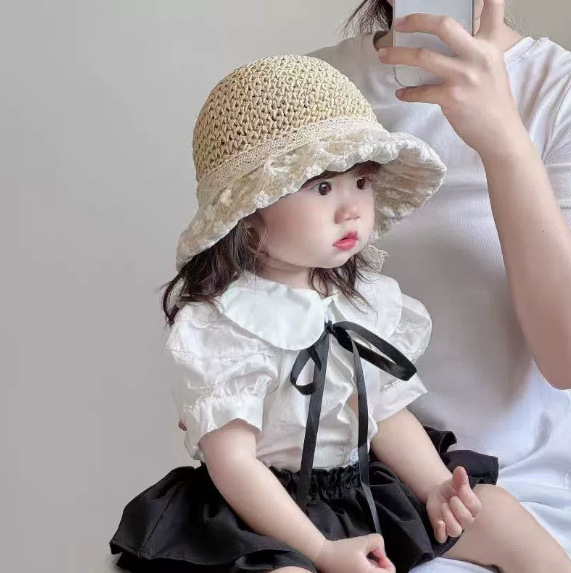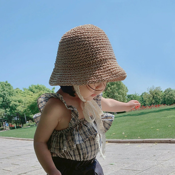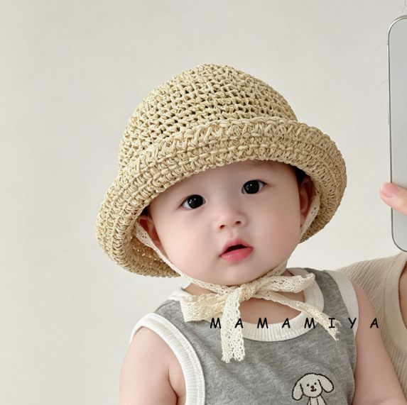 어린이 태양 모자 여름 통기성 레이스 업 자외선 차단제 밀짚 모자 소년과 소녀를위한 아기 여름 여행용 모자를 쓰고