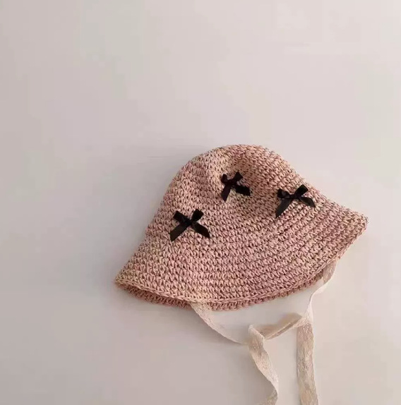 • 검은 나비 리본 승려 모자 핑크