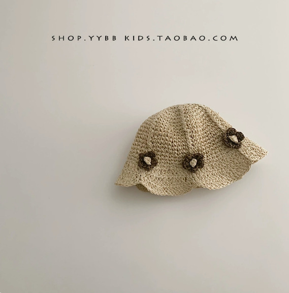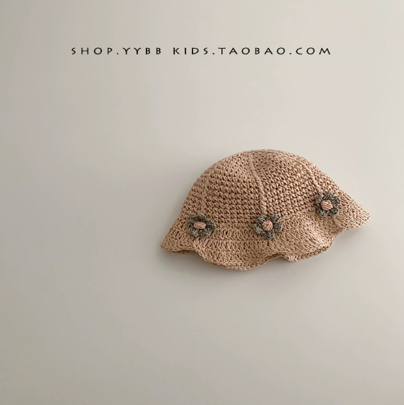 • 꽃무늬 핸드메이드 밀짚모자, 베이지
