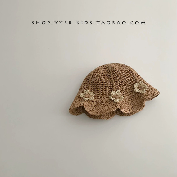 • 꽃무늬 핸드메이드 밀짚모자, 카키색