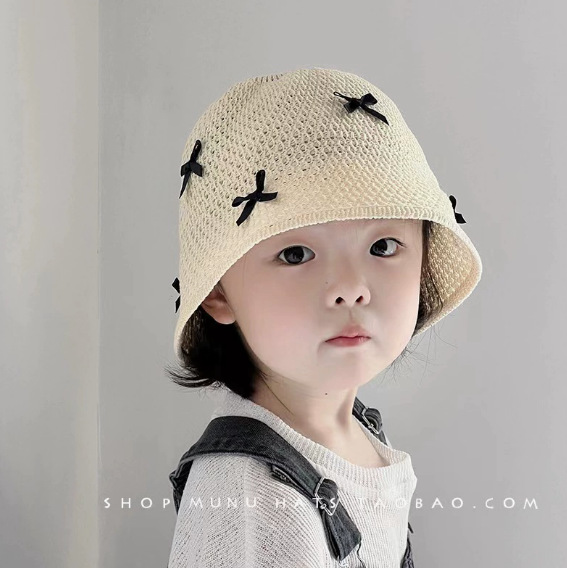 • 뒷머리 리본 버킷햇 (쌀색) + 1.5세-7세 (머리둘레 48-53cm) + Free 사이즈