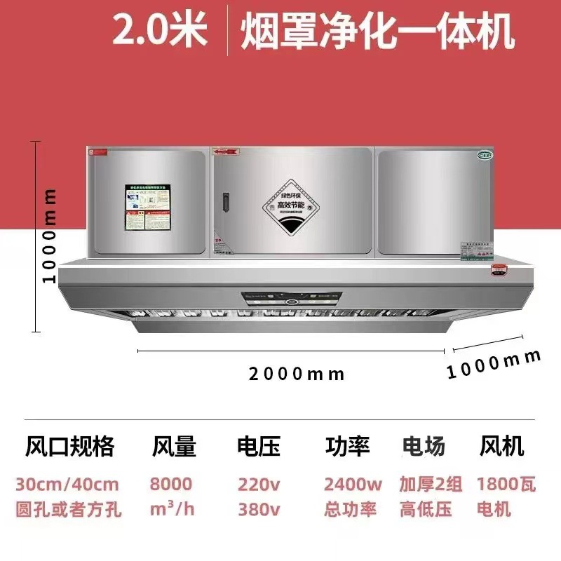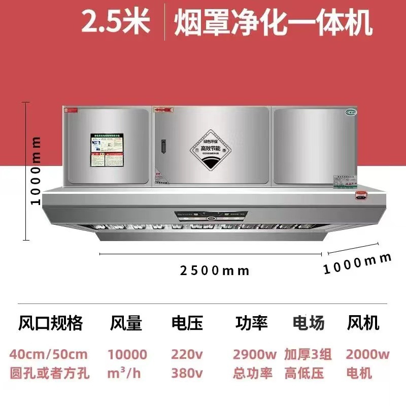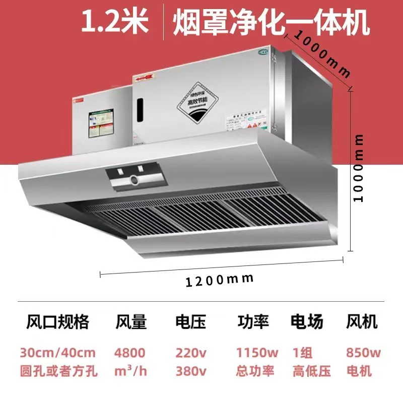 상업용 흄 정화 올인원 기계 레스토랑 주방 대형 흡입 저 공기 배출 청정기 케이터링 스테인레스 스틸 연기 후드