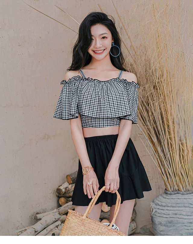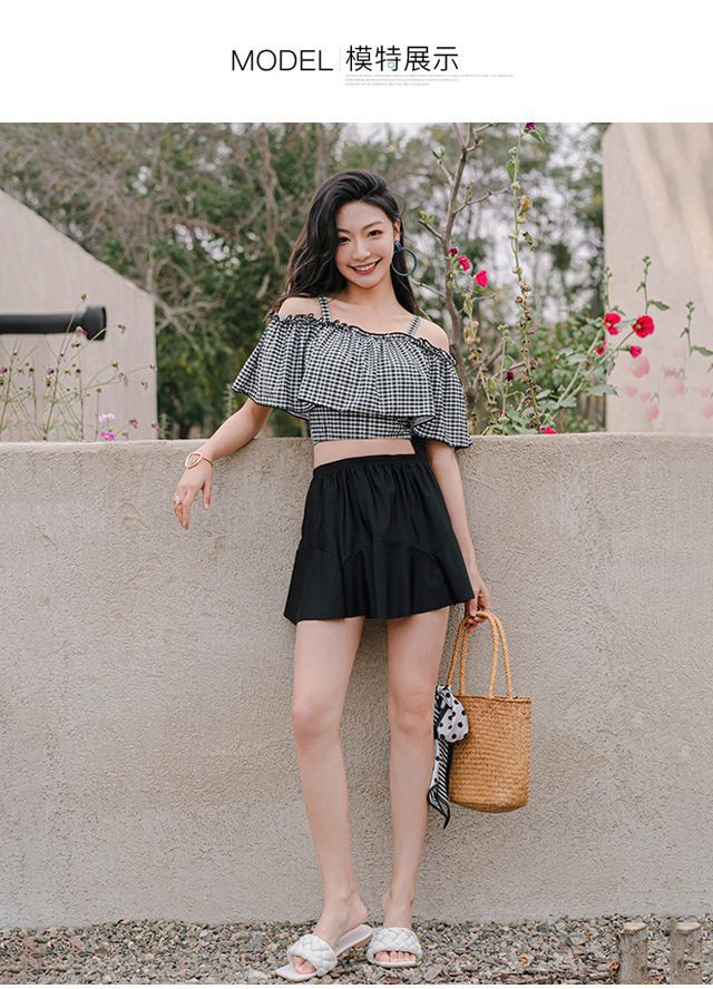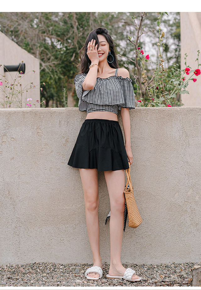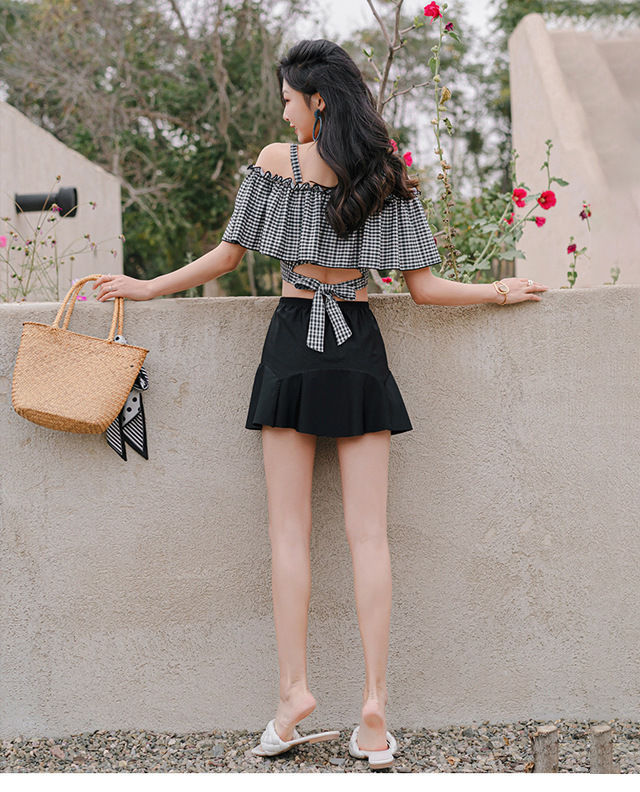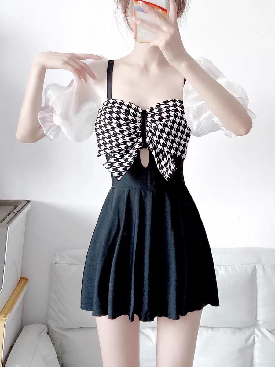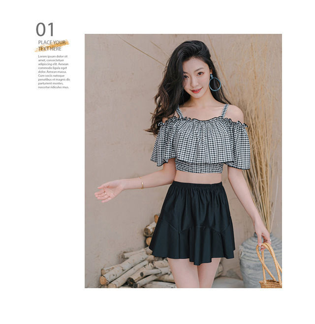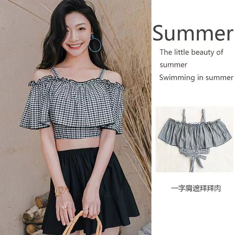 수영복 여자의 새로운 여름 원 숄더 슬링 수영복 한국 보수적 인 배꼽 덮음 슬리밍 스플릿 스커트 수영복