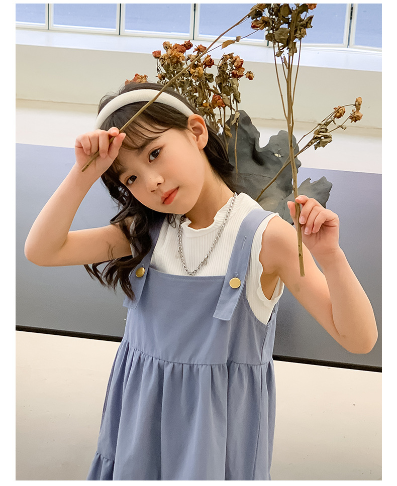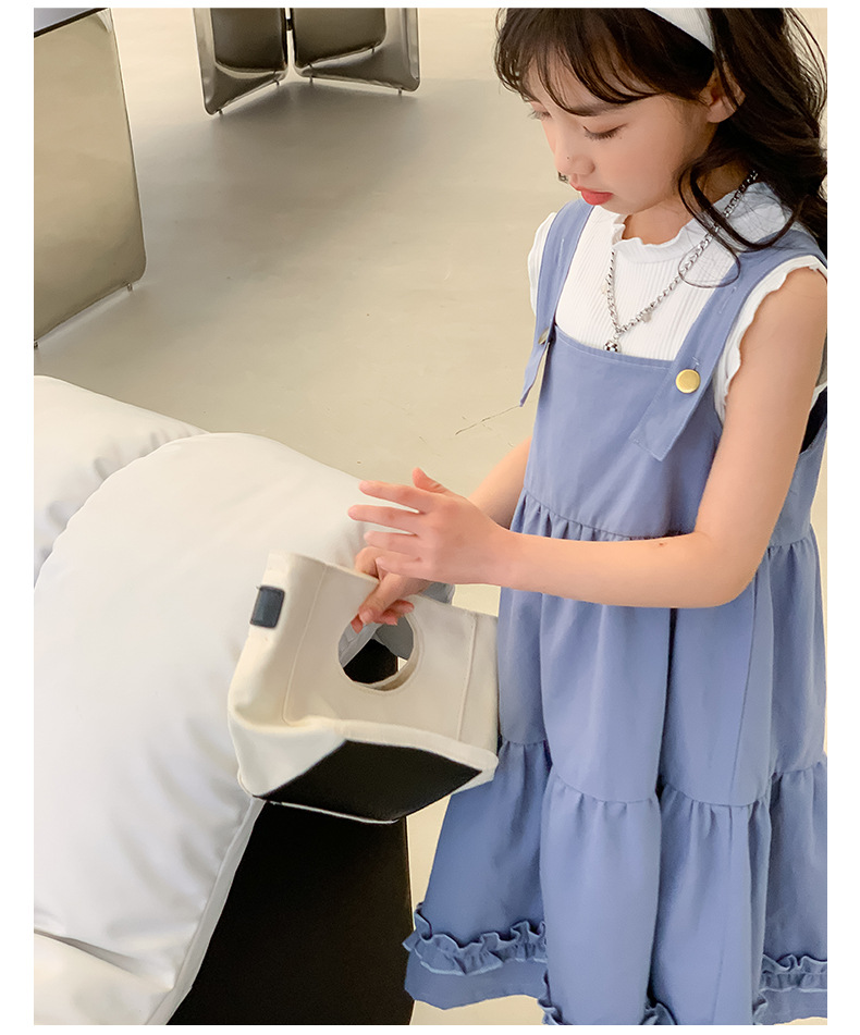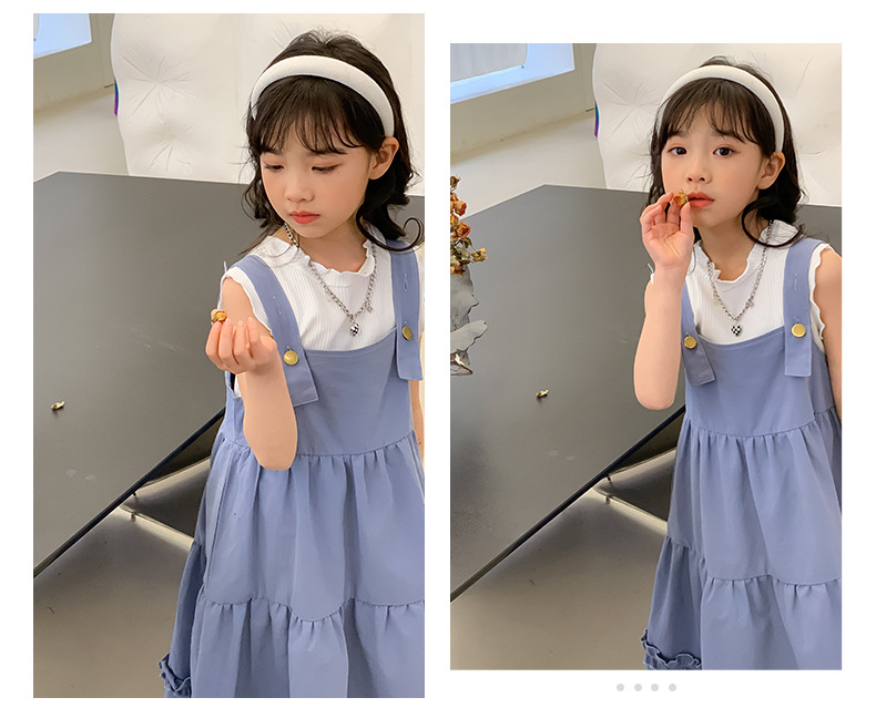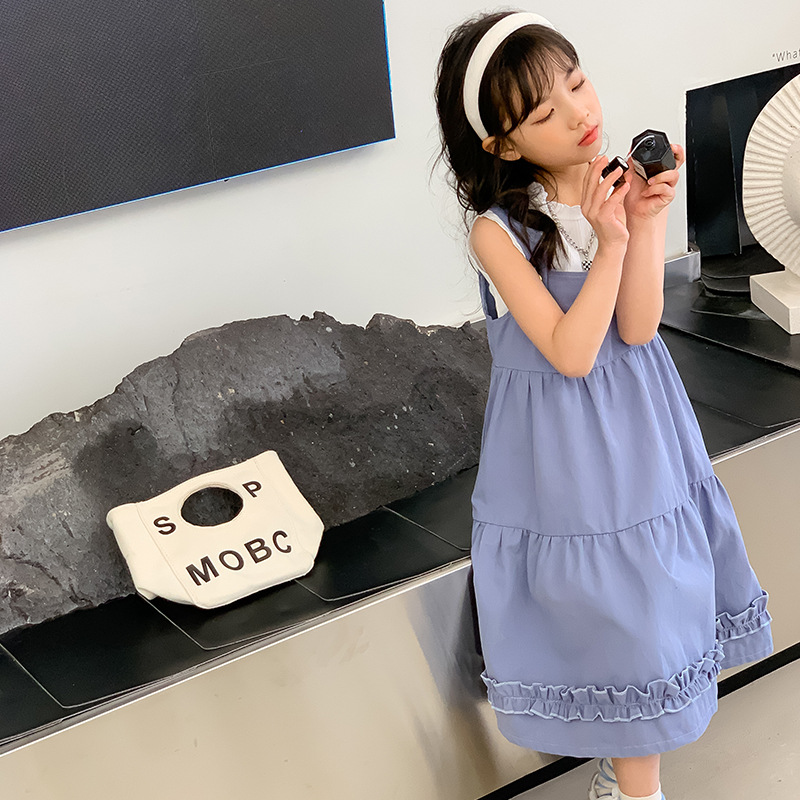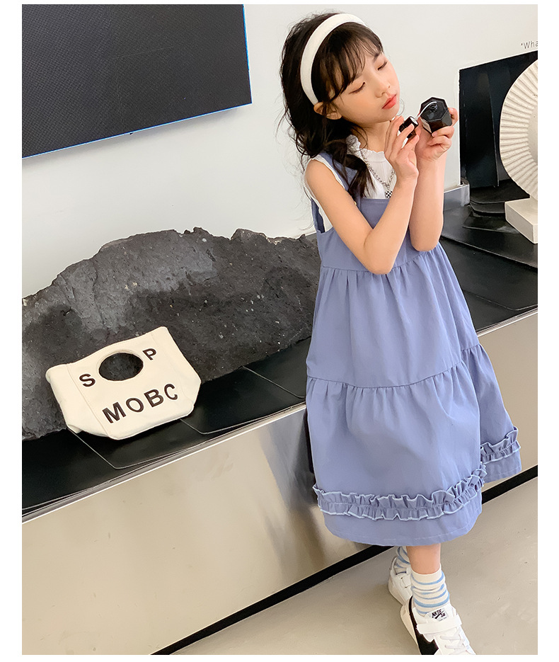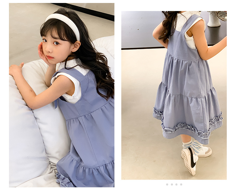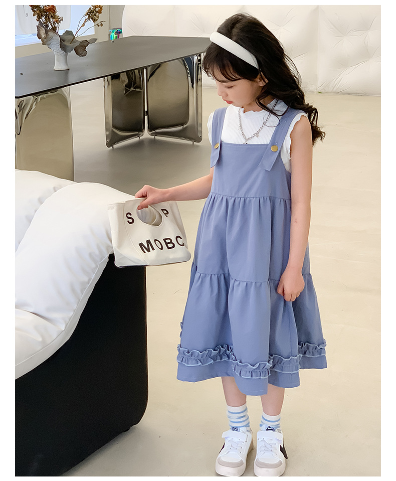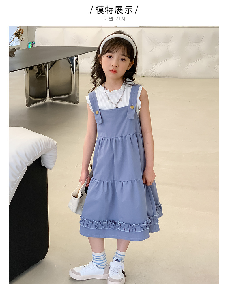 여아 세트 2023 여름 한국 스타일 아동복 여아 대학 스타일 예술적 스트랩 밴드 스커트 케이크 롱 스커트 조끼스토어 가기