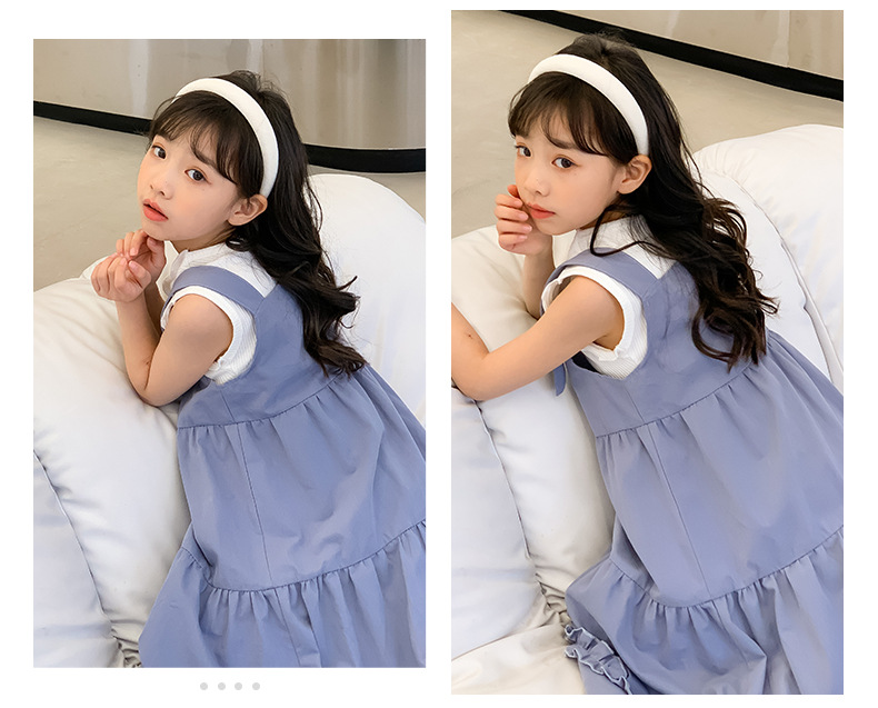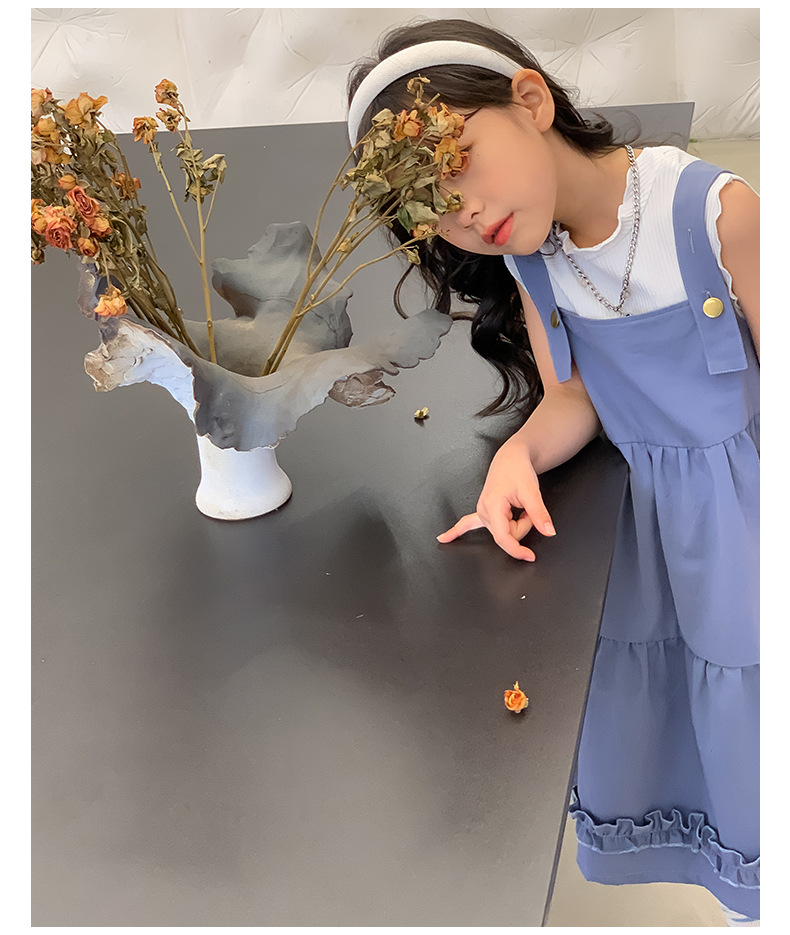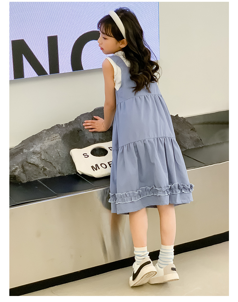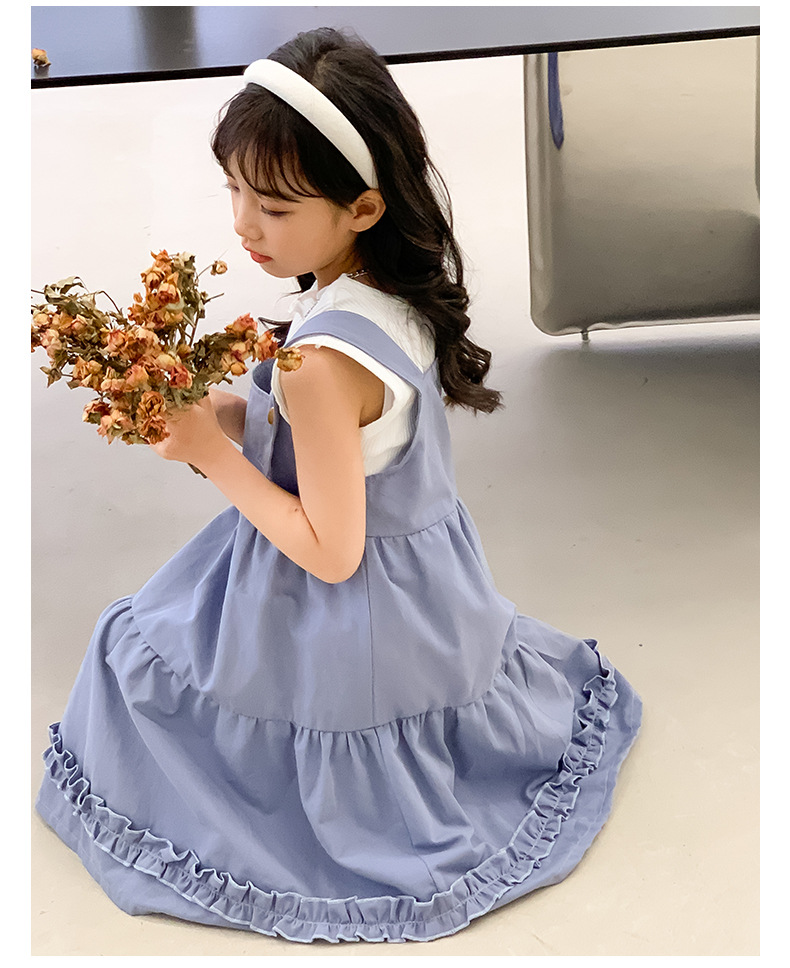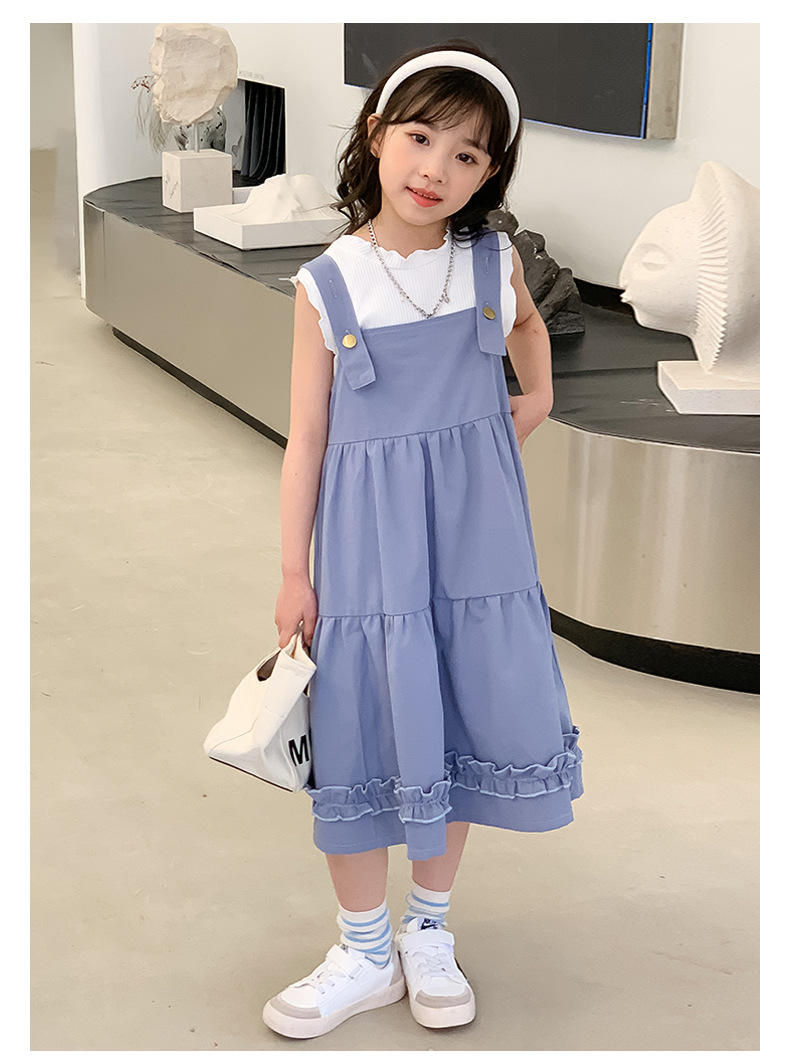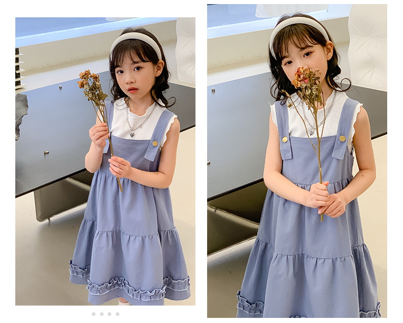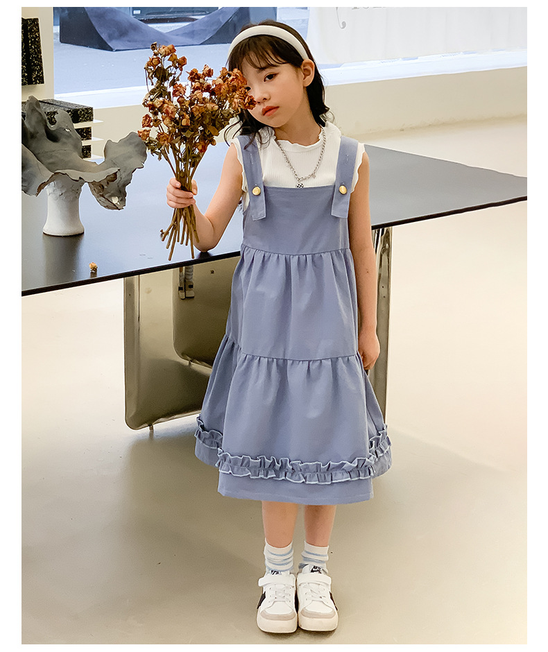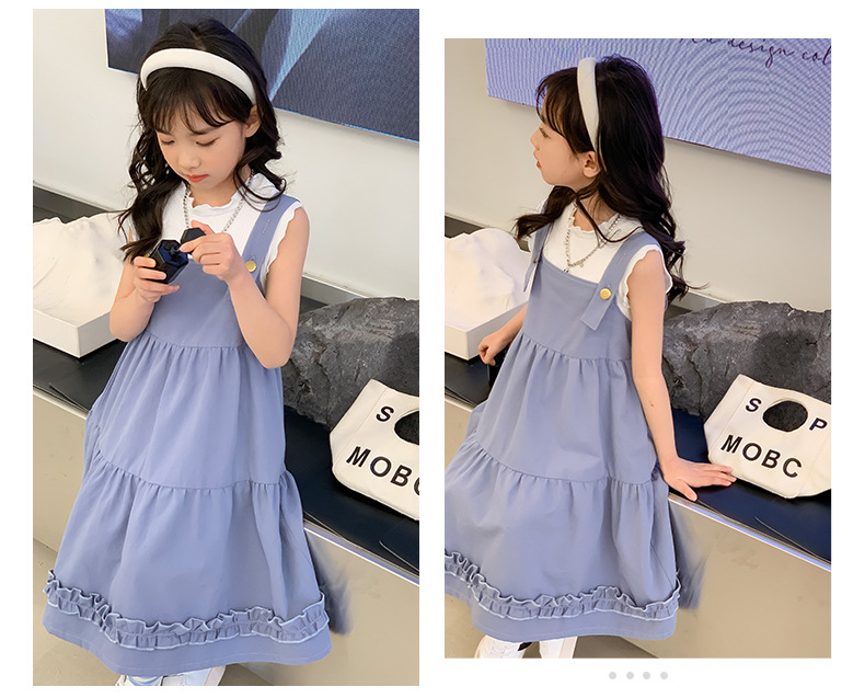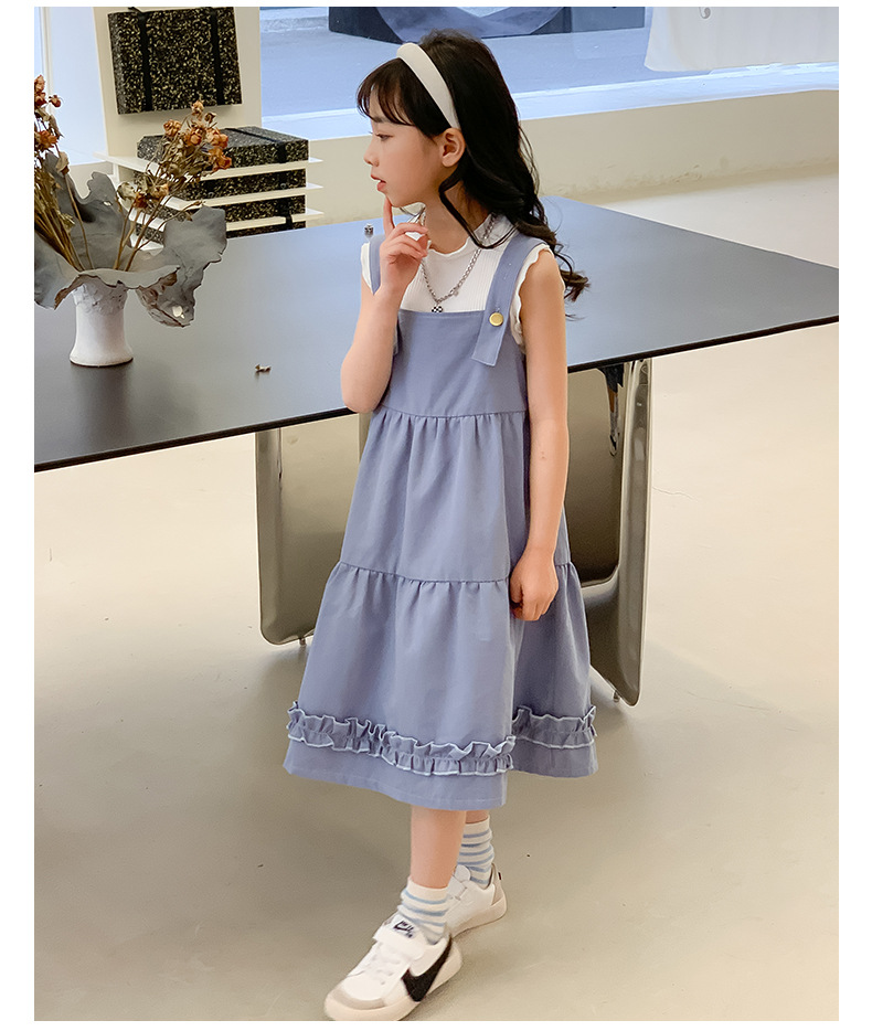 여아 세트 2023 여름 한국 스타일 아동복 여아 대학 스타일 예술적 스트랩 밴드 스커트 케이크 롱 스커트 조끼스토어 가기