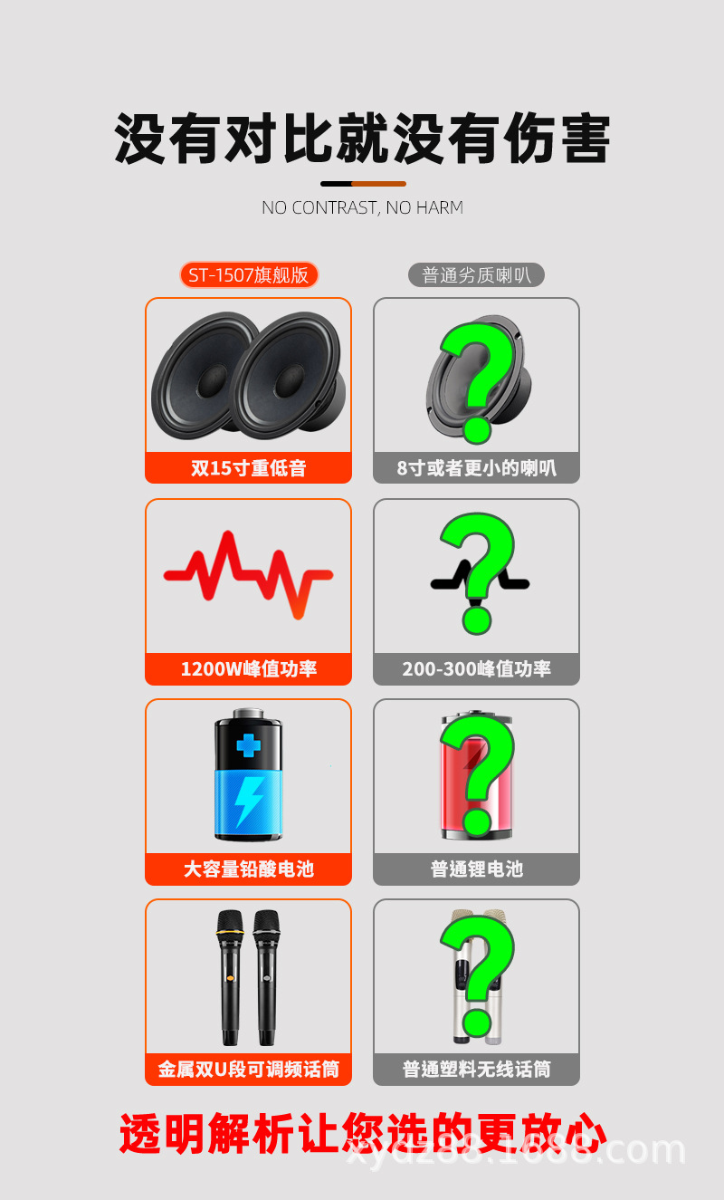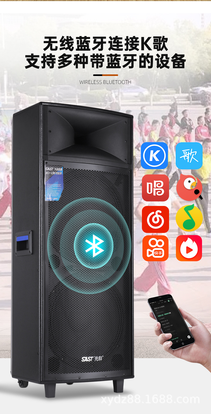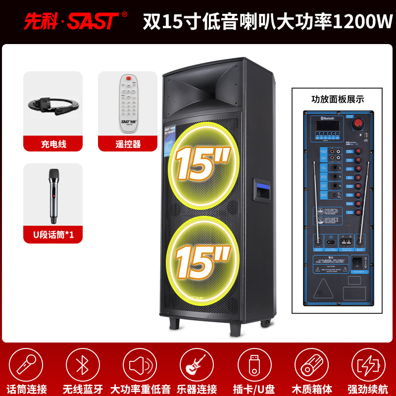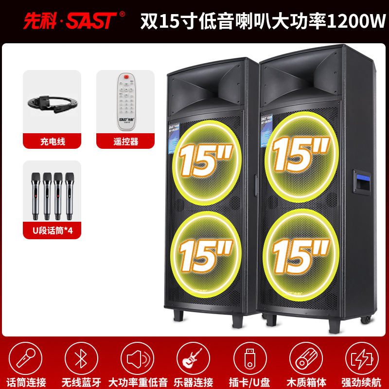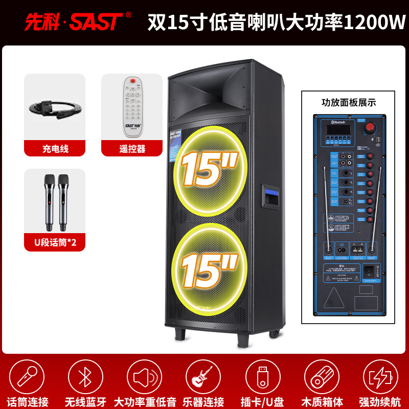 Xianke Double 15inch 야외 고출력 스퀘어 댄스 오디오 휴대용 무대 웨딩 쇼 중저음 및 대용량스토어 가기
