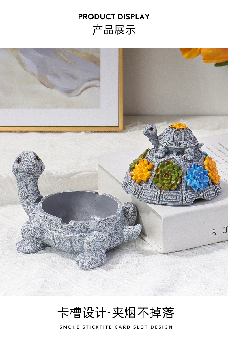 창조적 인 성격 수지 다육 모자 거북이 재떨이 (뚜껑 포함) 거실 커피 테이블 사무실 장식품 선물 도매