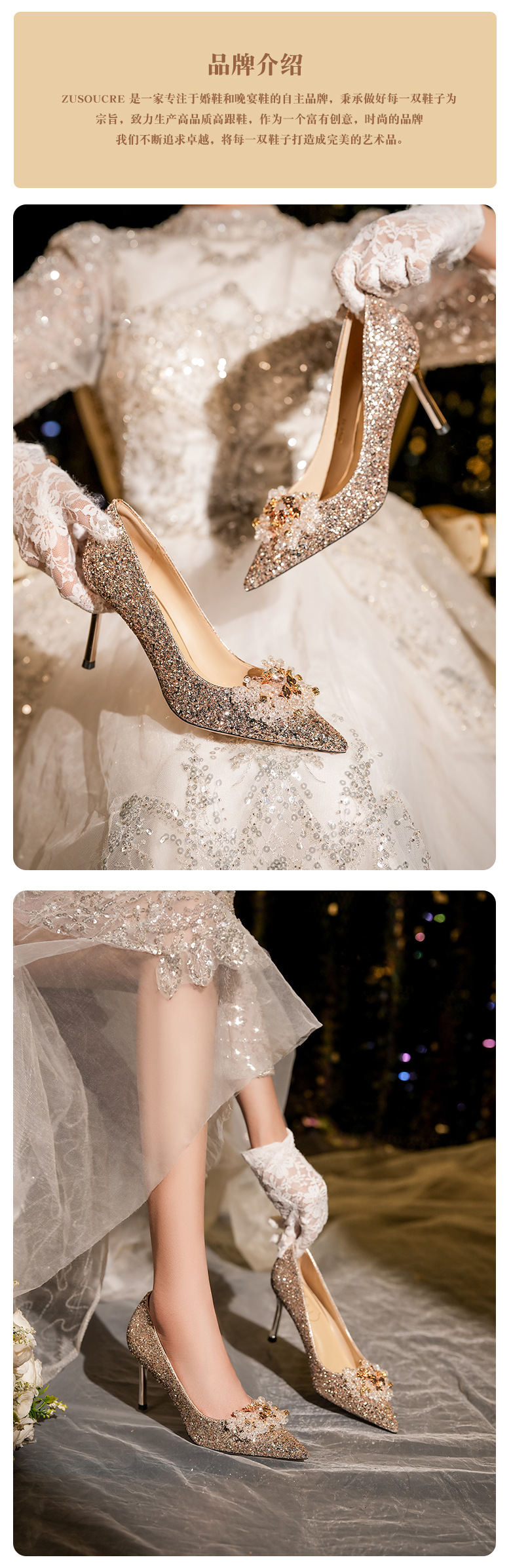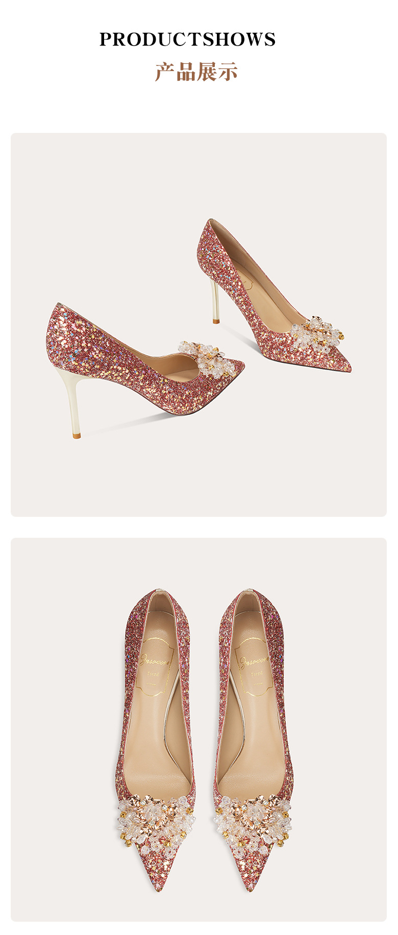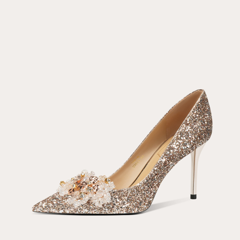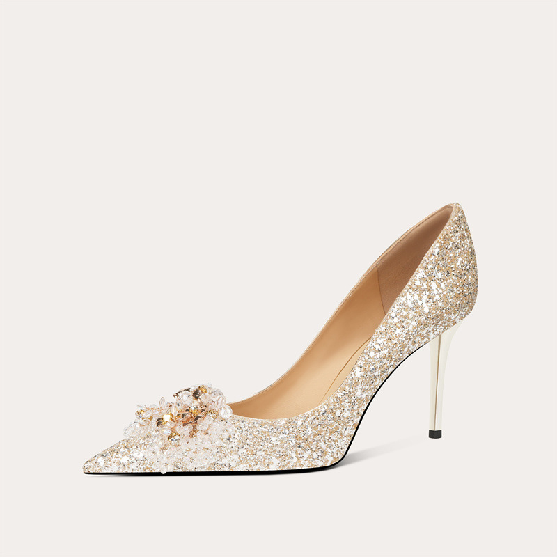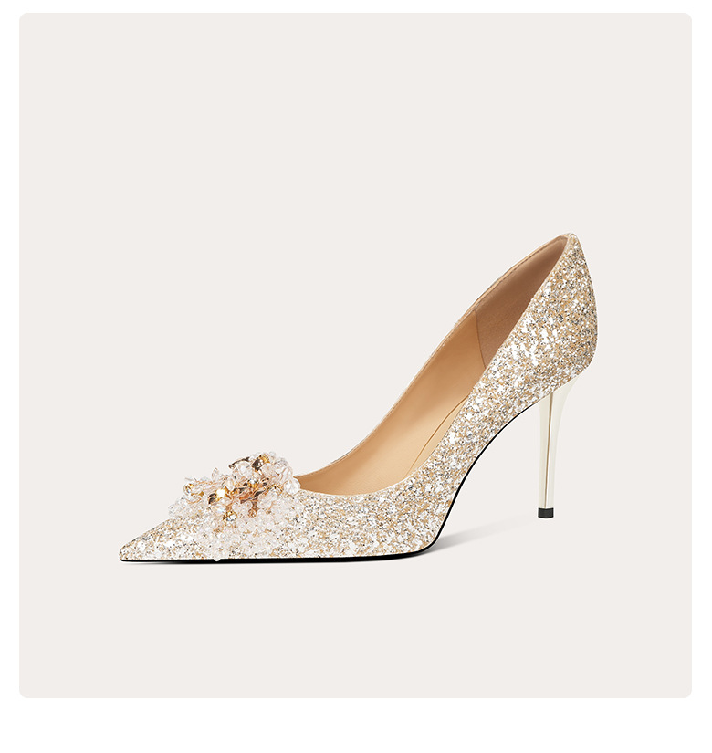 [양가죽] 반짝이 뾰족한 크리스탈 웨딩 슈즈 프렌치 스틸레토 힐 중국 신부 신발 레드 라인 석 하이힐 여성