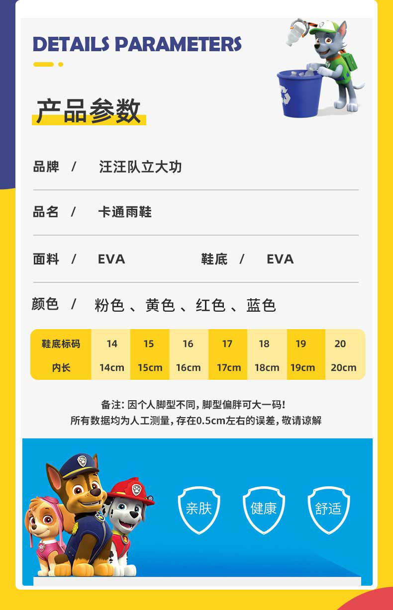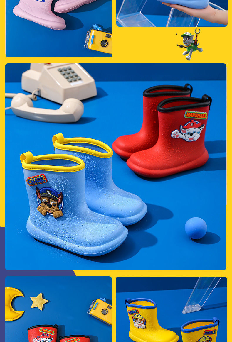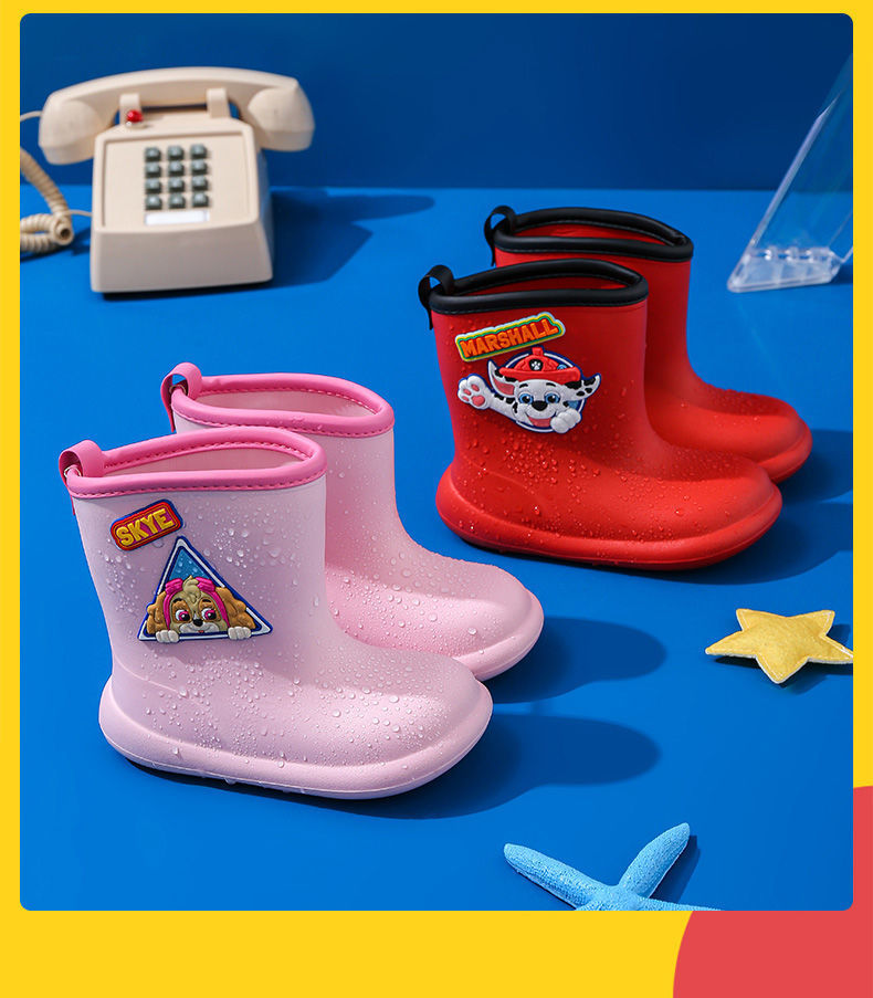 왕 왕 팀 아기 레인 부츠 어린이 미끄럼 방지 장화 소년 귀여운 어린이 소녀 어린이 방수 신발 어린이 고무 신발