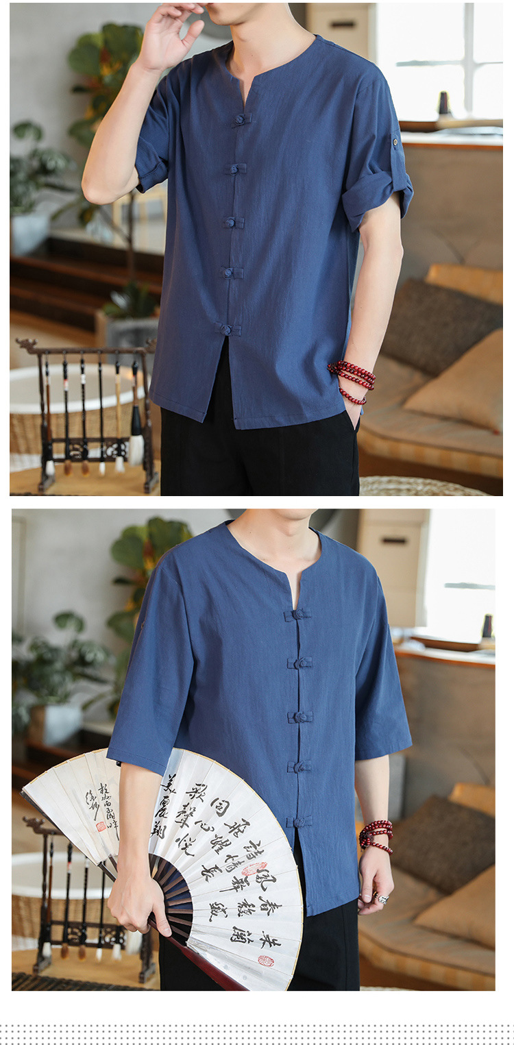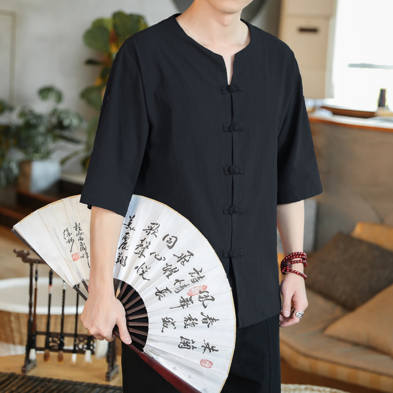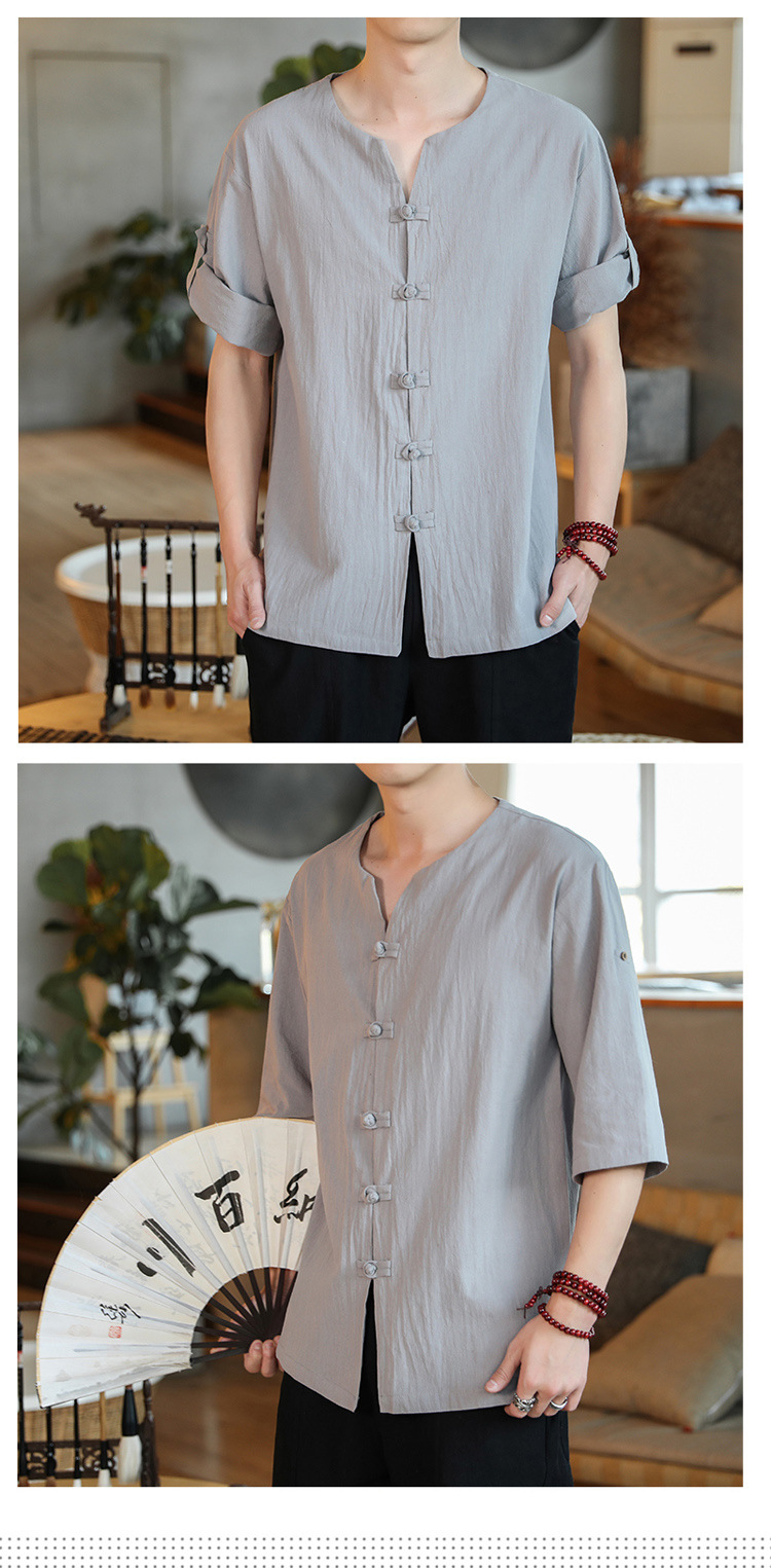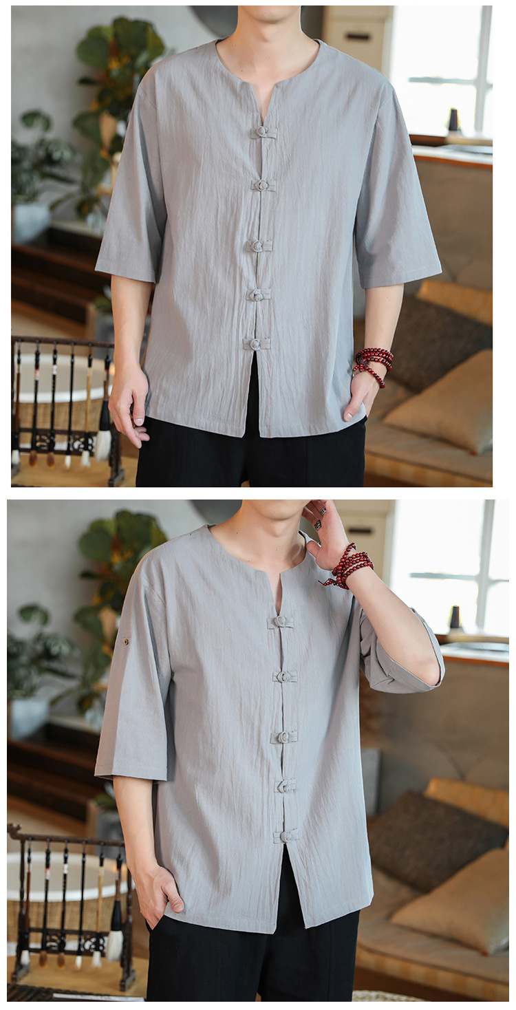 2023 중국 스타일 여름 가디건 플러스 사이즈 캐주얼 반 소매 버튼 셔츠 일본 면 린넨 반팔 남성 셔츠 유행스토어 가기