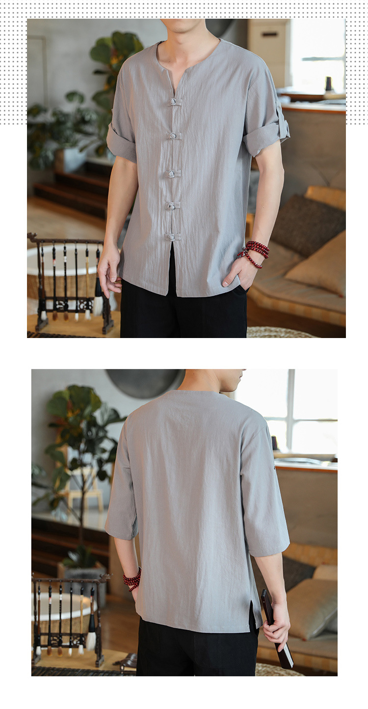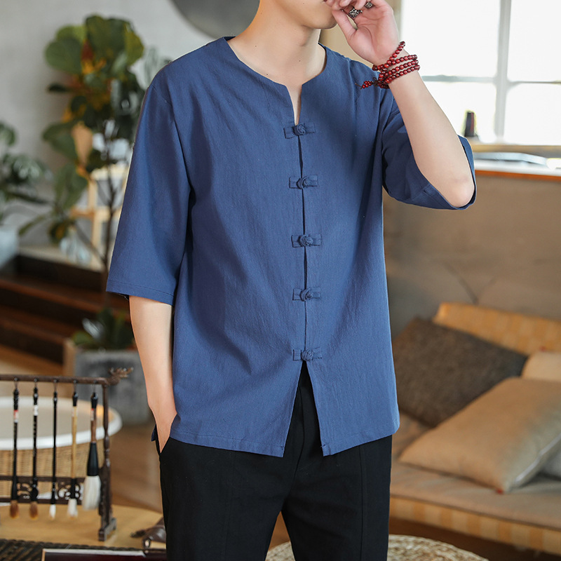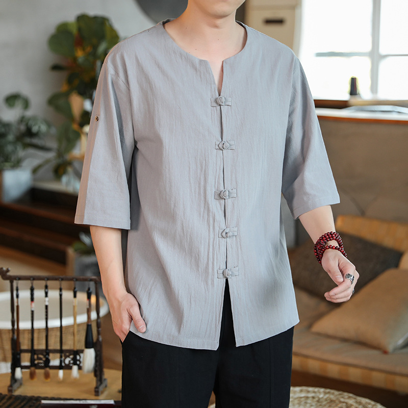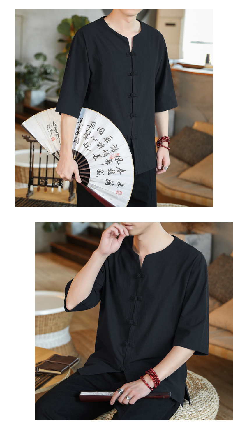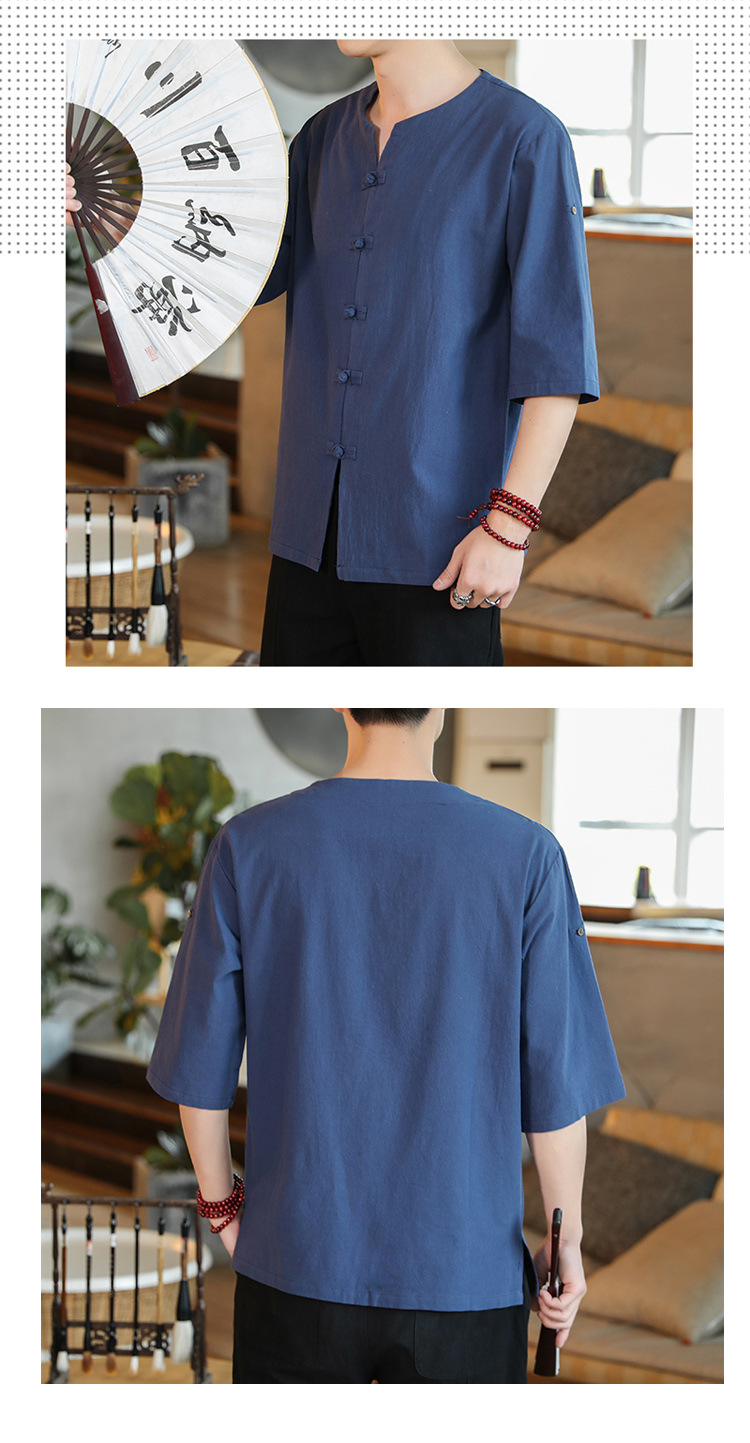 2023 중국 스타일 여름 가디건 플러스 사이즈 캐주얼 반 소매 버튼 셔츠 일본 면 린넨 반팔 남성 셔츠 유행스토어 가기