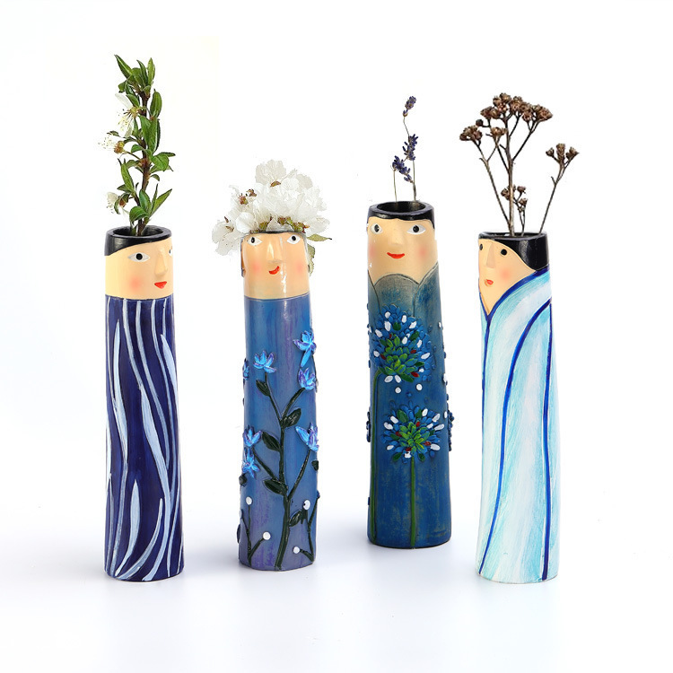 크로스 보더 보헤미안 수제 가족 얼굴 꽃병 수지 공예 장식품 홈 거실 장식 도매