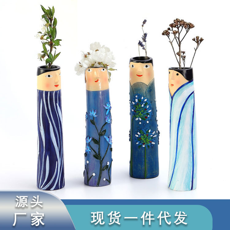 크로스 보더 보헤미안 수제 가족 얼굴 꽃병 수지 공예 장식품 홈 거실 장식 도매스토어 가기
