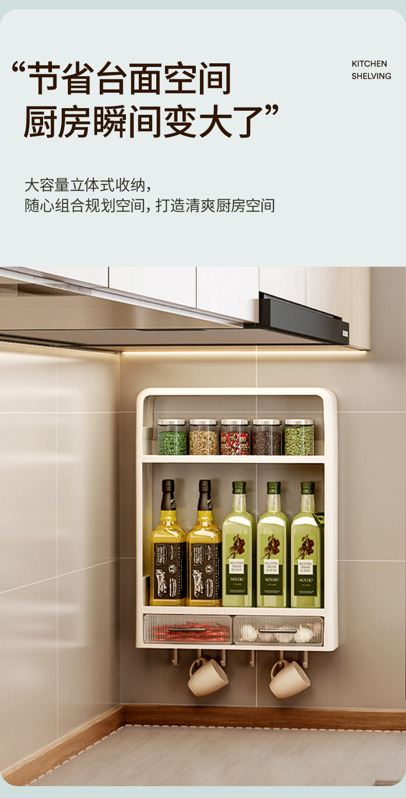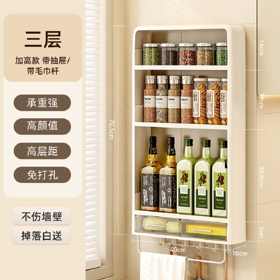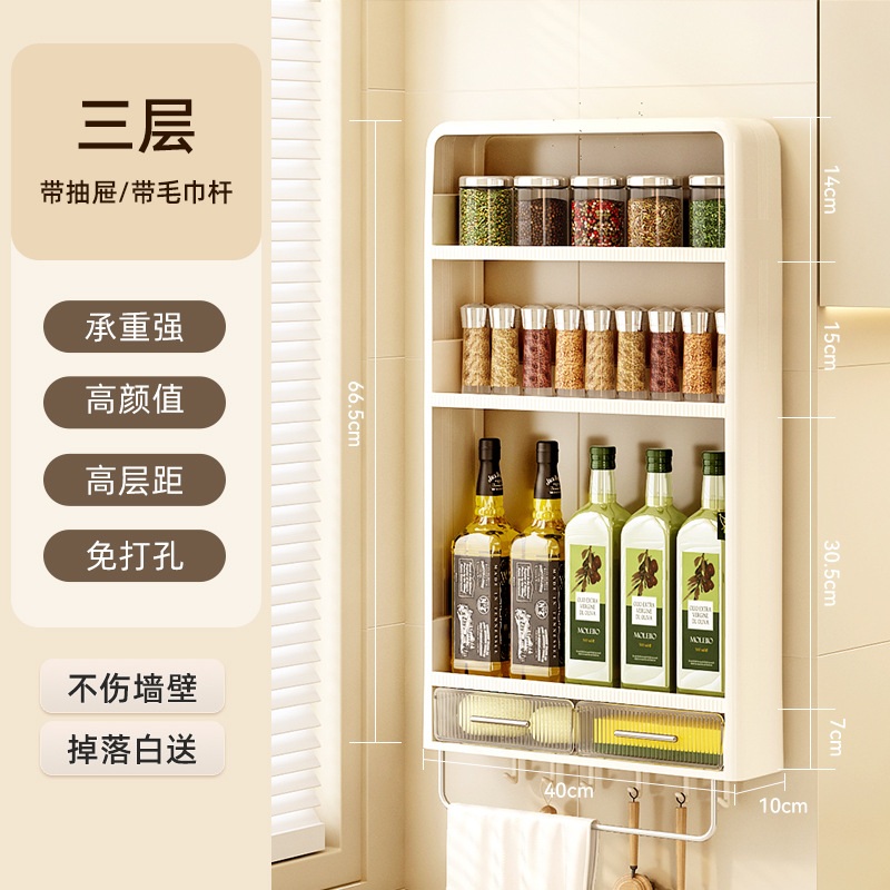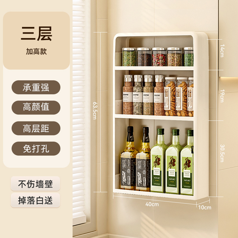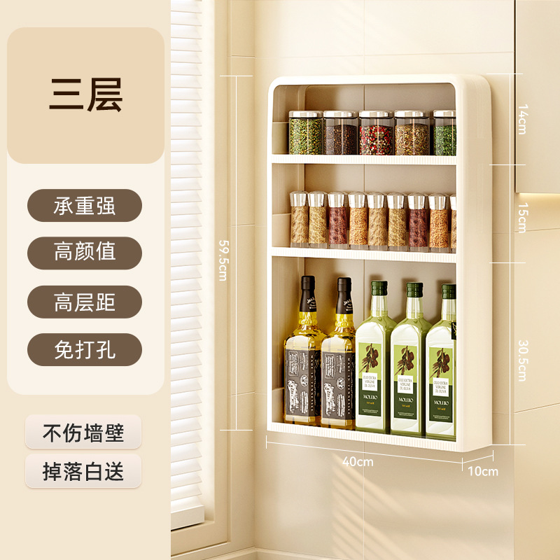 주방 랙 펀치없는 벽걸이 형 다층 캐비닛 조미료 항아리 주방 네일 프리 스토리지 랙 조미료 랙