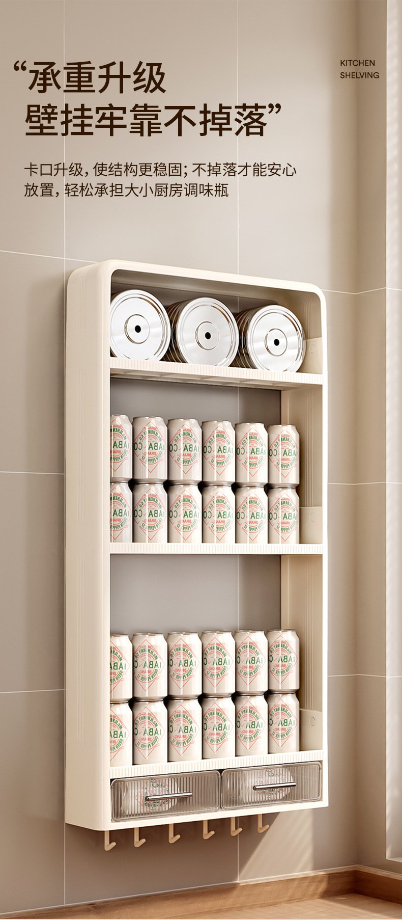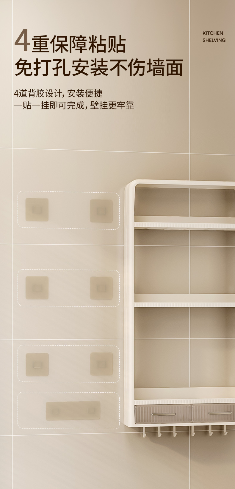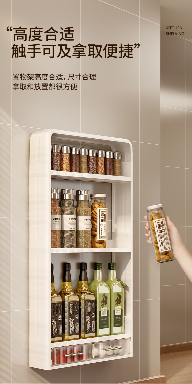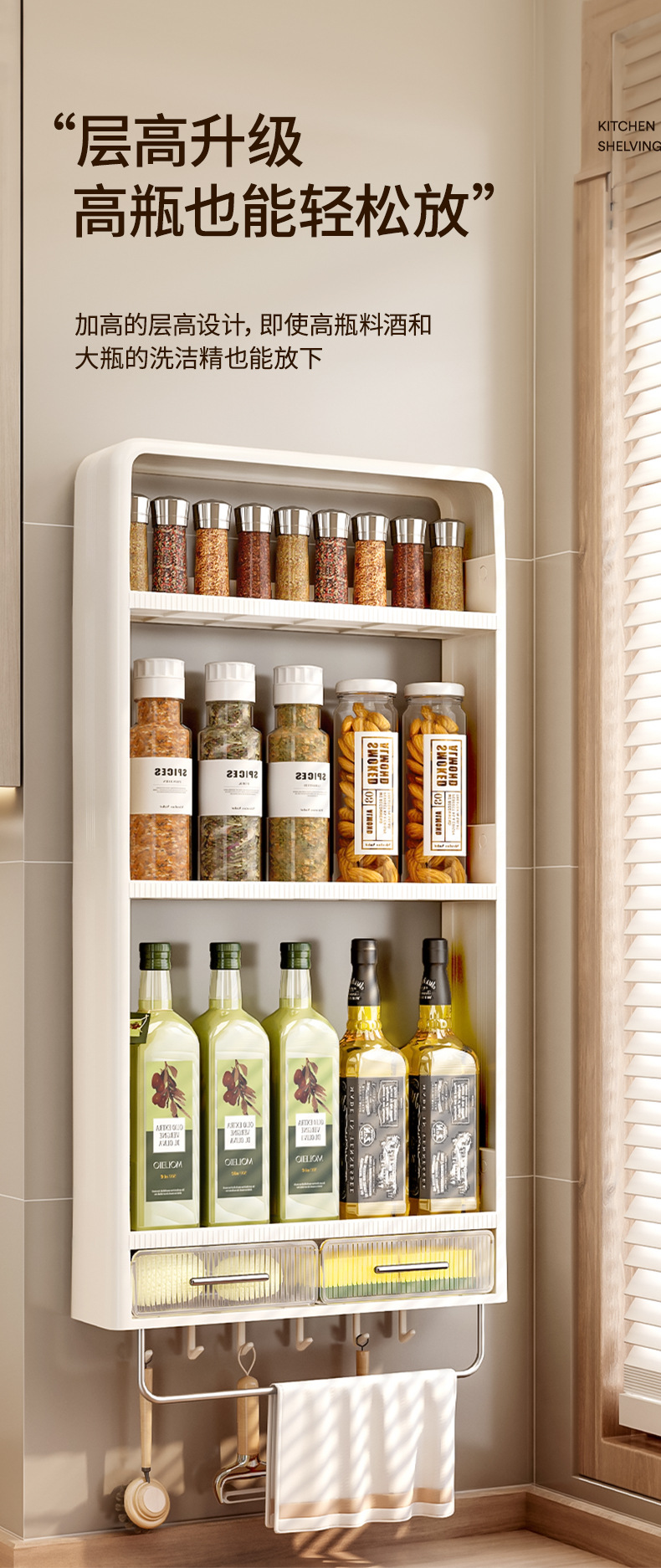 주방 랙 펀치없는 벽걸이 형 다층 캐비닛 조미료 항아리 주방 네일 프리 스토리지 랙 조미료 랙