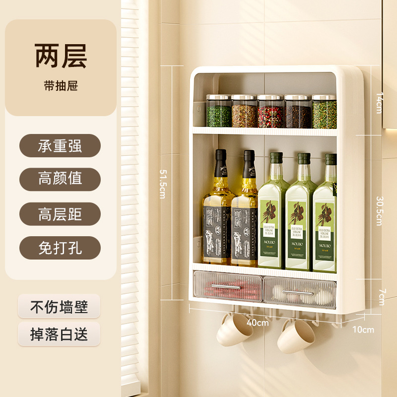 주방 랙 펀치없는 벽걸이 형 다층 캐비닛 조미료 항아리 주방 네일 프리 스토리지 랙 조미료 랙스토어 가기