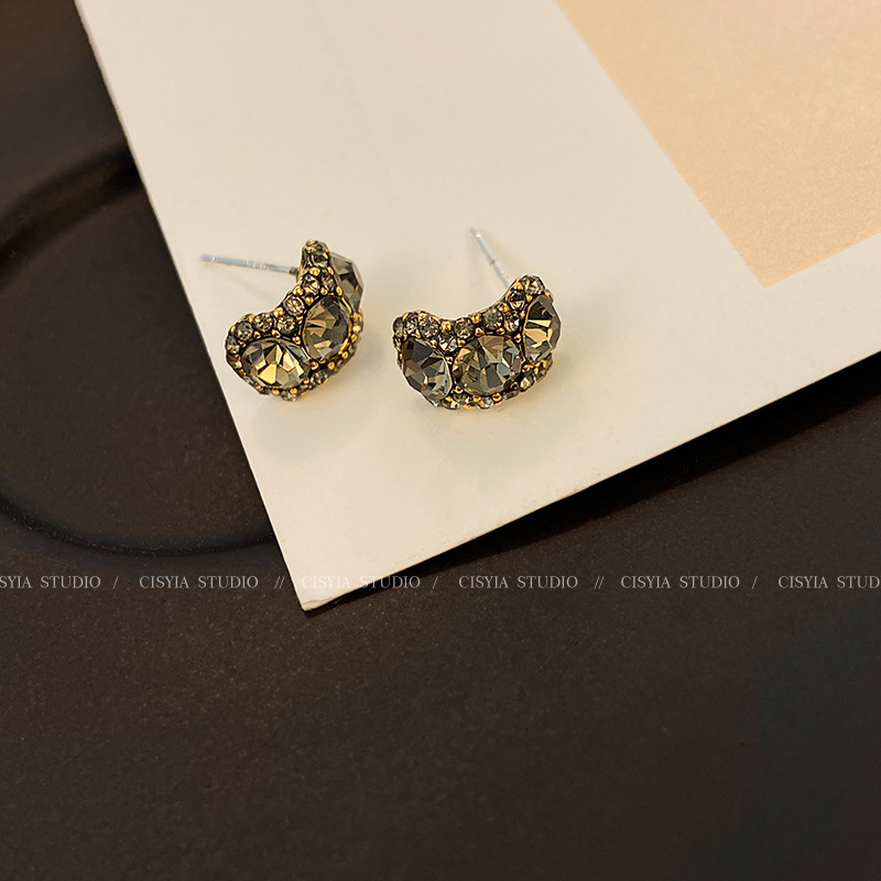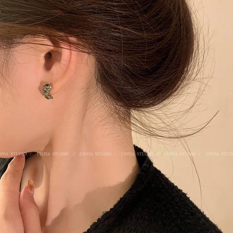 나이트 베를린 그레이 925 실버 핀 귀걸이 한국 틈새 복고풍 고급 우아한 라이트 럭셔리 귀걸이