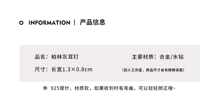 나이트 베를린 그레이 925 실버 핀 귀걸이 한국 틈새 복고풍 고급 우아한 라이트 럭셔리 귀걸이스토어 가기