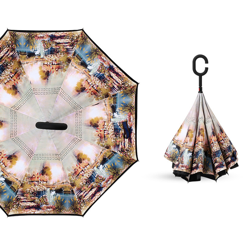 C형 핸즈프리 더블데크 자동차 역우산 수동 비즈니스 일자 우산 광고 우산 양산 역우산스토어 가기