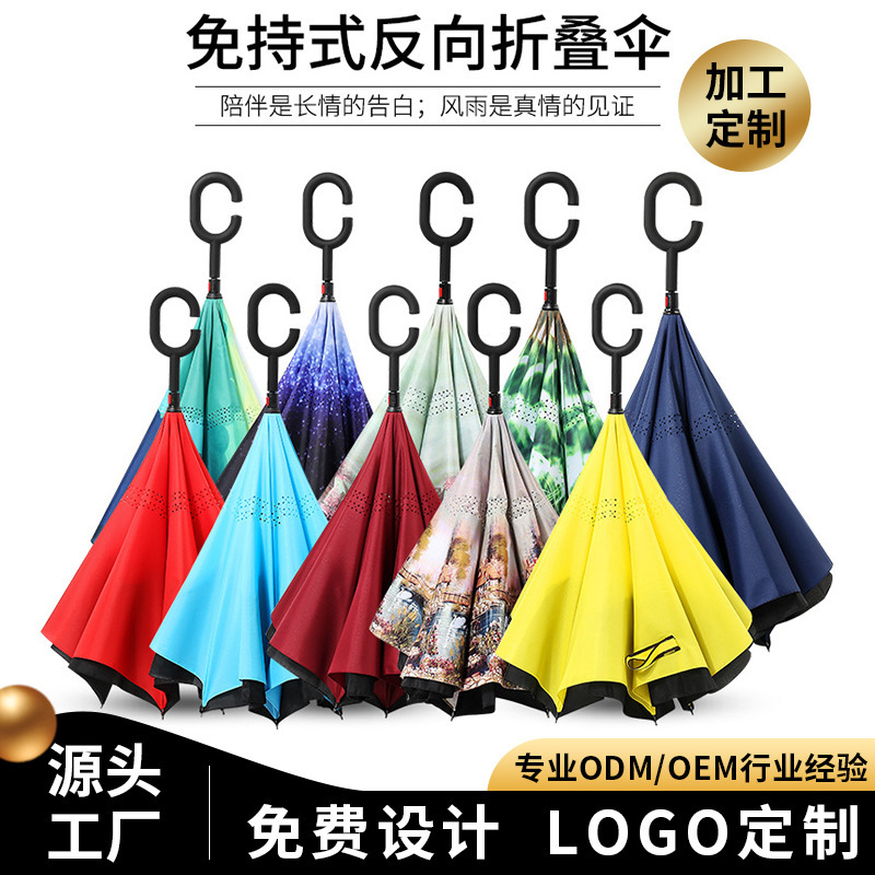 C형 핸즈프리 더블데크 자동차 역우산 수동 비즈니스 일자 우산 광고 우산 양산 역우산