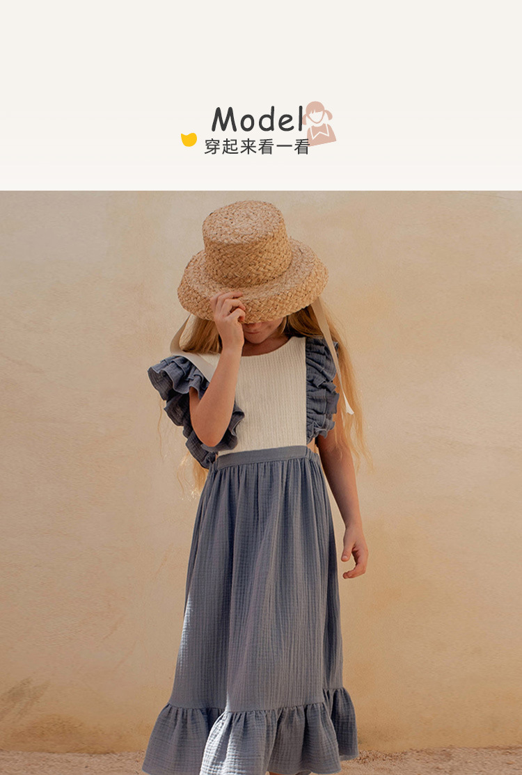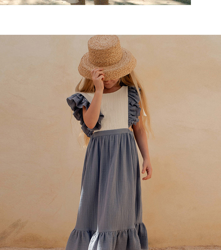 북유럽 스타일 스티칭 2 색 원피스 2023 여름 새로운 스타일 순면 휴가 스타일 비치 공주 원피스 민소매 긴 원피스