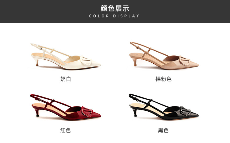葡萄妈studiolee2024新款V扣法式夏季尖头单鞋高跟后空细跟凉鞋女