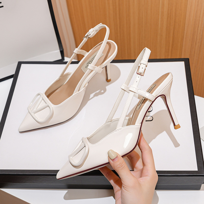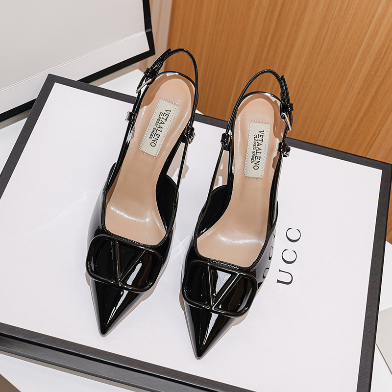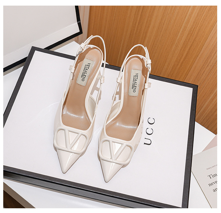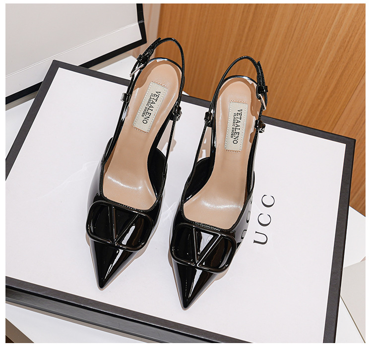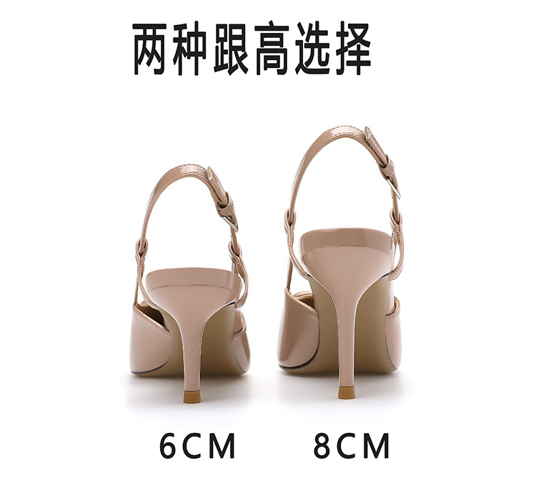 2025 누드 컬러 하이힐 여성용 페이턴트 가죽 OL 출퇴근용 뾰족코 얇은 굽 단화 브이자 브랜드 뾰족코 샌들