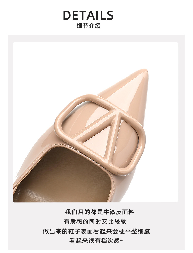 2025 누드 컬러 하이힐 여성용 페이턴트 가죽 OL 출퇴근용 뾰족코 얇은 굽 단화 브이자 브랜드 뾰족코 샌들스토어 가기