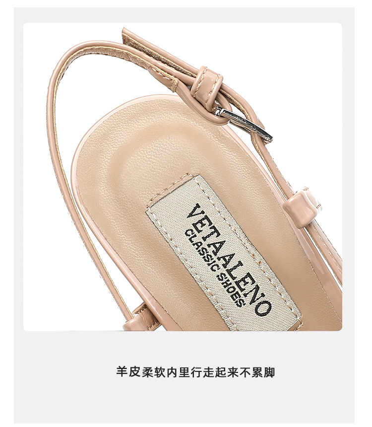 VETAALENO高版本V家铆钉三环高跟鞋2024夏葡萄妈尖头包头羊皮凉鞋