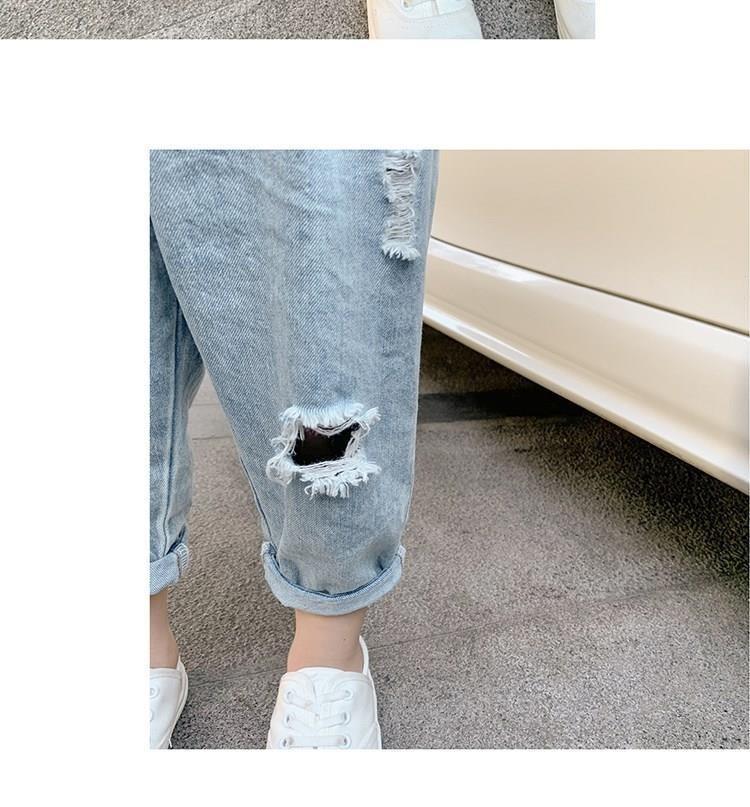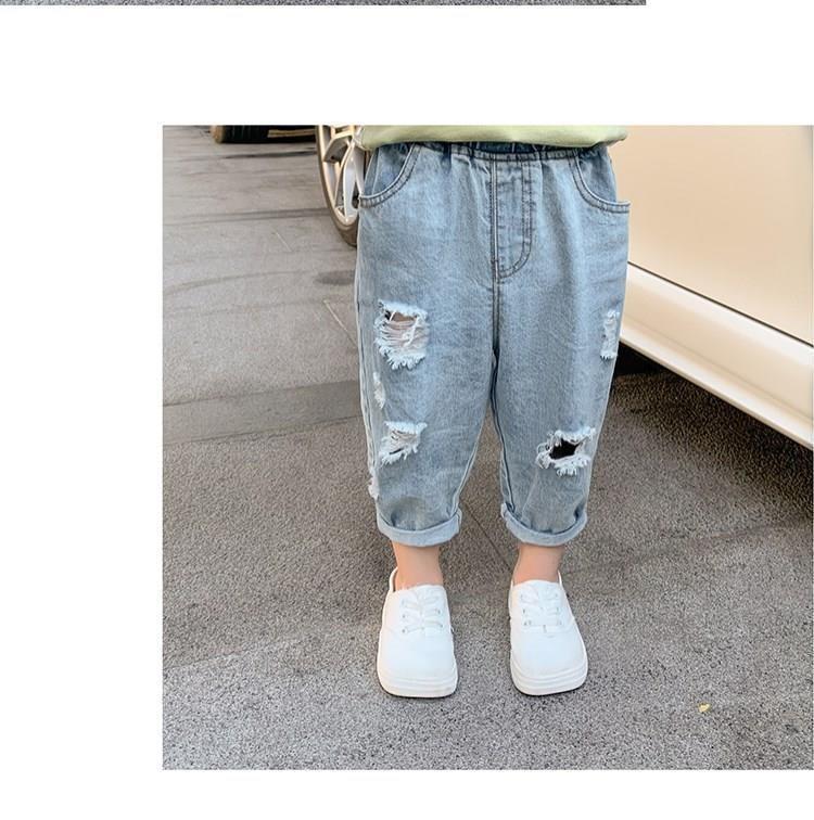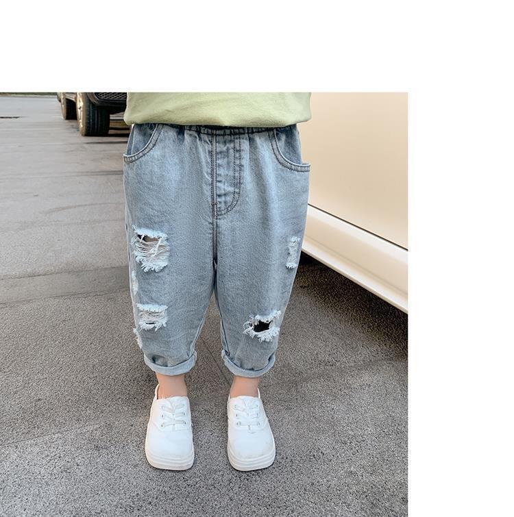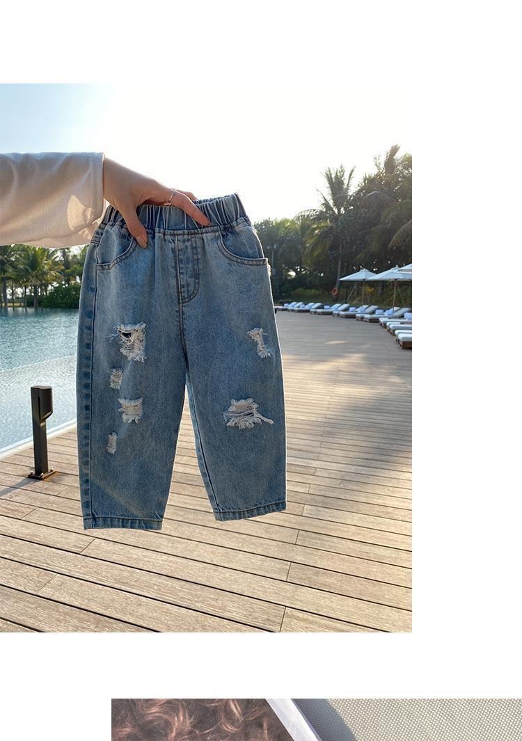 어린이 여름 찢어진 청바지 봄과 가을 소년 바지 어린이 아기 느슨한 크롭 여아 얇은 바지