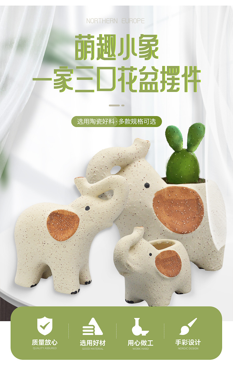 국경 간 다육 화분 녹색 식물 원예 보육 냄비 간단한 창조적 인 세라믹 코끼리 장식품 화분에 심은 데스크탑 공예스토어 가기