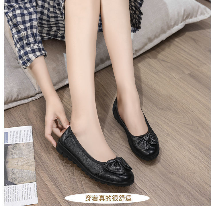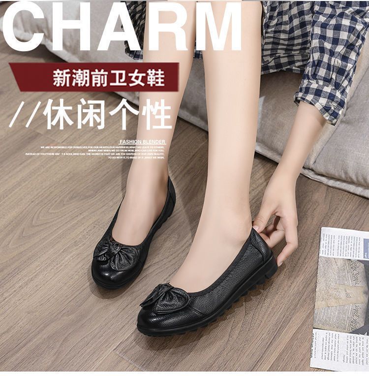 2023 봄 뉴 리얼 소프트 가죽 마더 슈즈 소프트 솔 싱글 레이어 슈즈 여성용 가죽 신발 슈퍼 소프트 편안한 모든 매치 플랫 미끄럼 방지스토어 가기