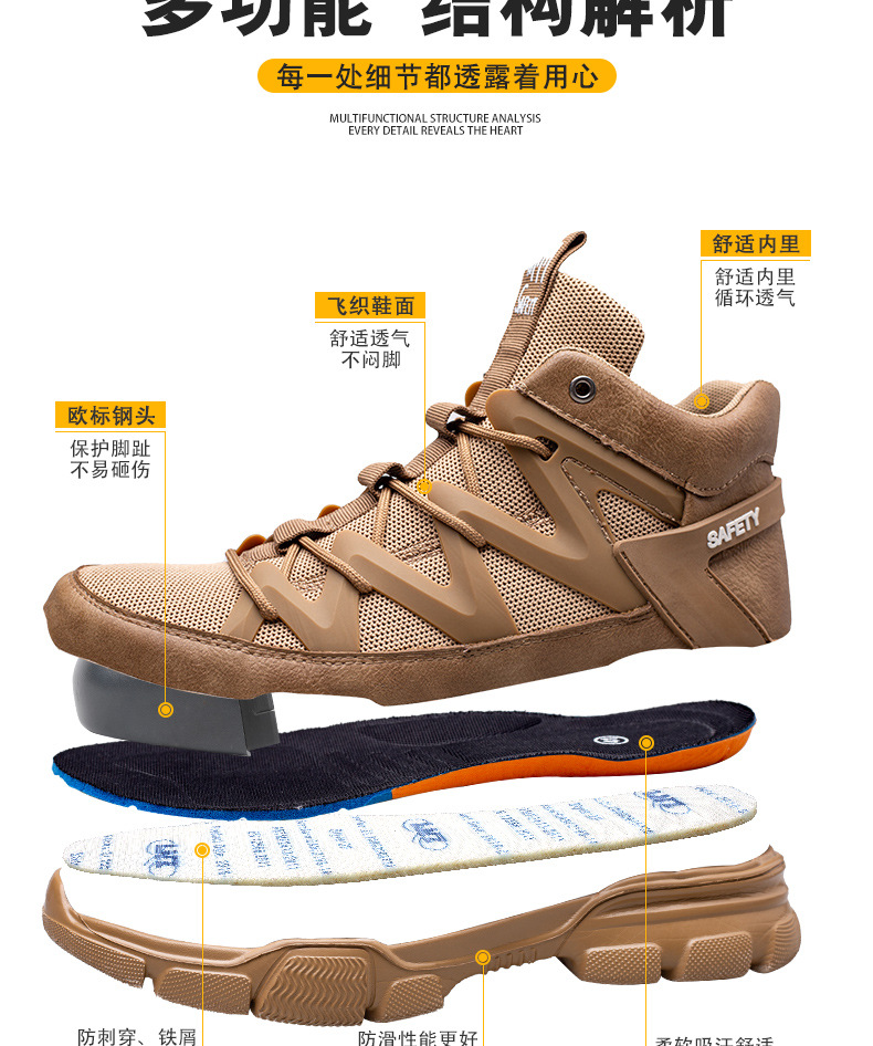 남성과 여성을 위한 크로스보더 하이탑 경량 통기성 안전화 사계절 건설 현장 플러스 사이즈 위한 충돌 방지 및 피어싱 방지 안전화스토어 가기