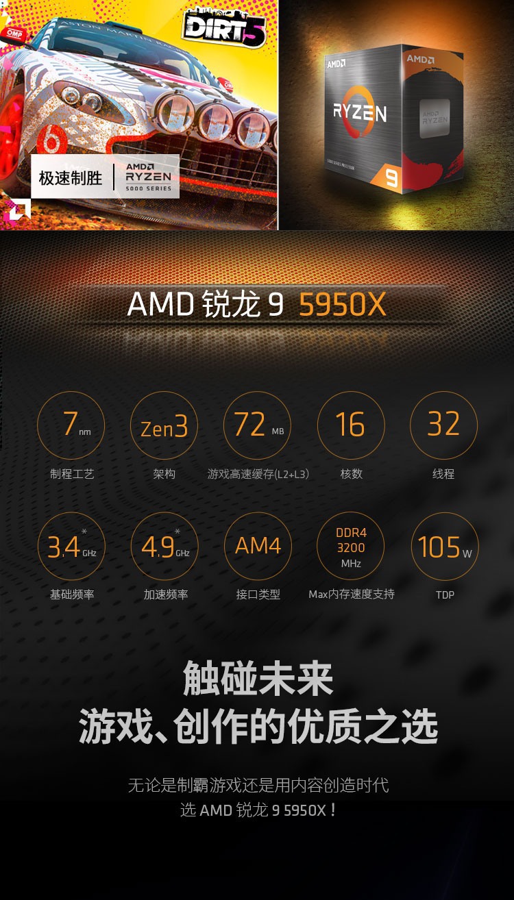 AMD 5000 시리즈 Ruilong R9 5950X 프로세서 CPU AM4 인터페이스 박스/예비 부품