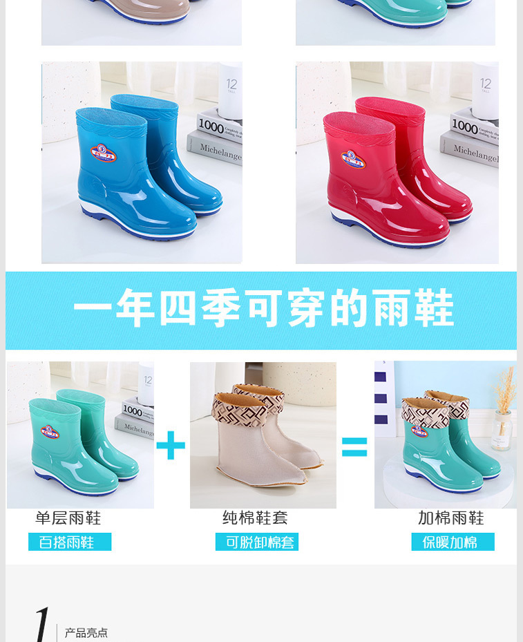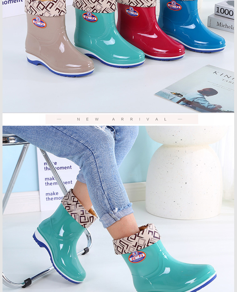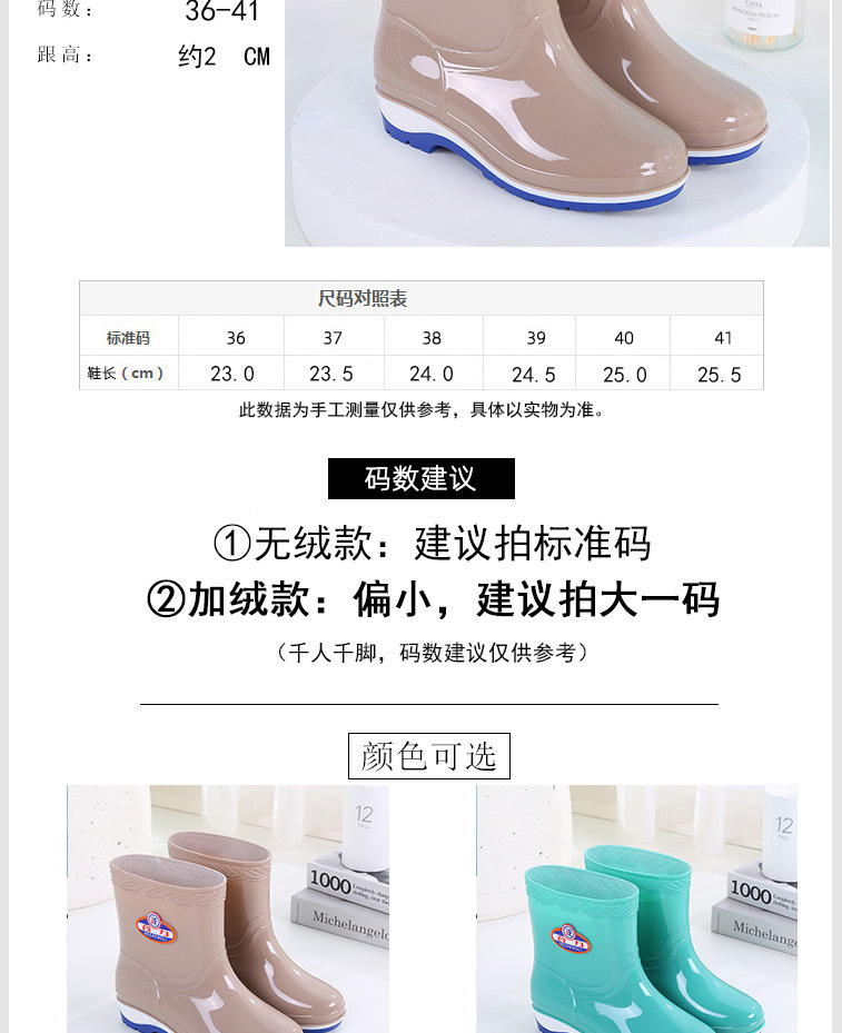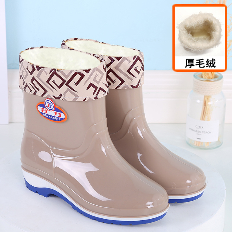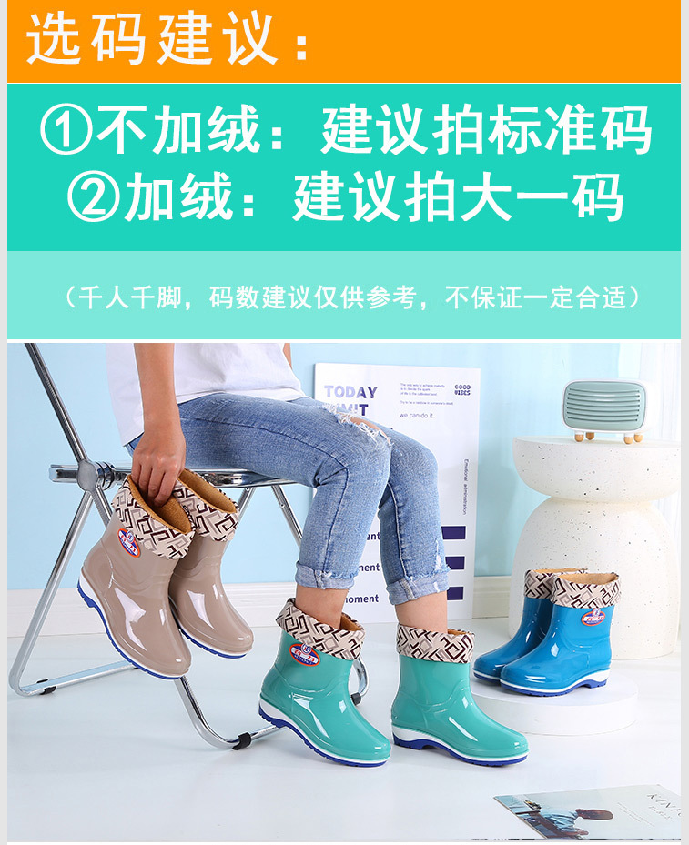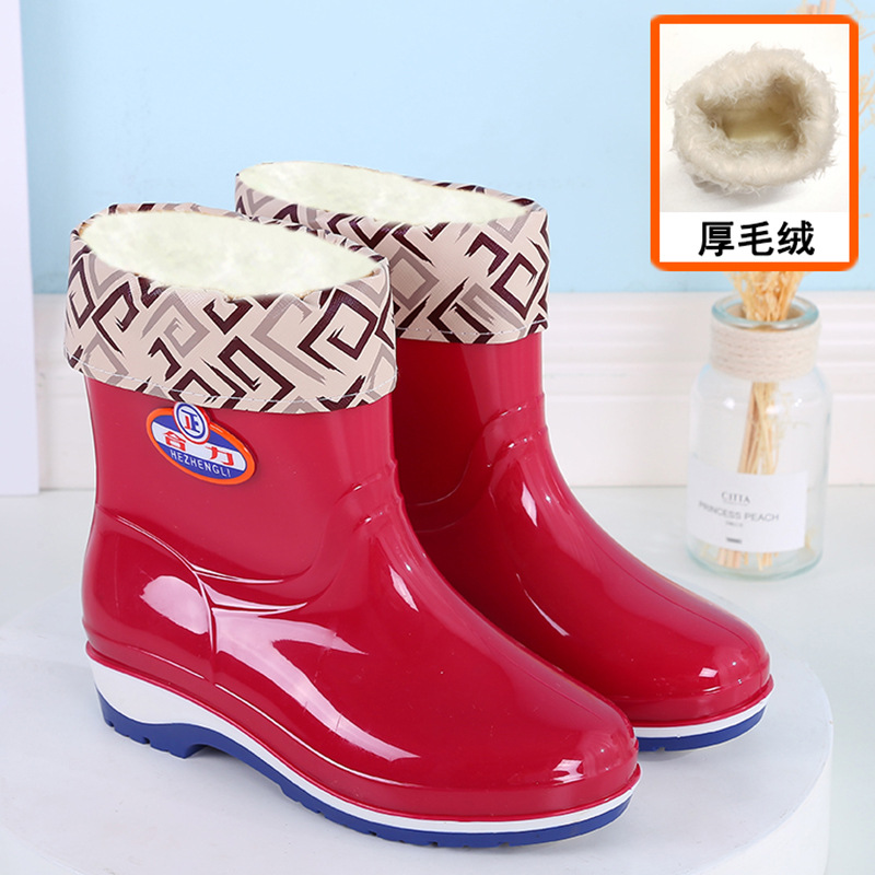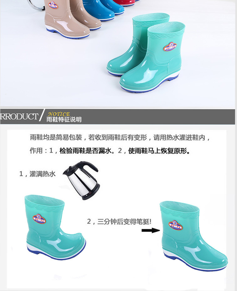 패션 미드 배럴 미끄럼 방지 레인 부츠 여성용 성인 작업 워터 부츠 방수 내마모성 레인 부츠 도매 주방 물 신발 고무 신발 여름스토어 가기