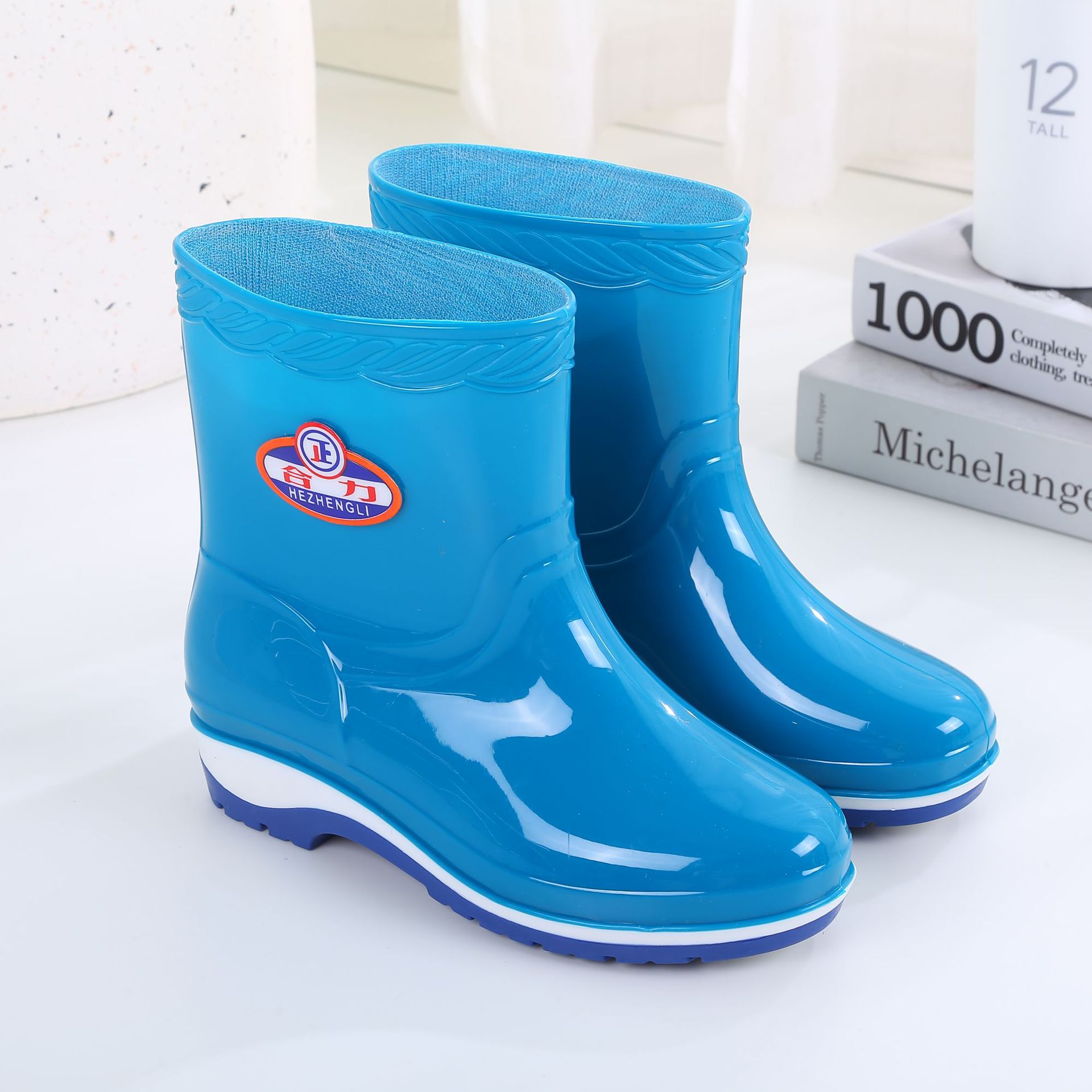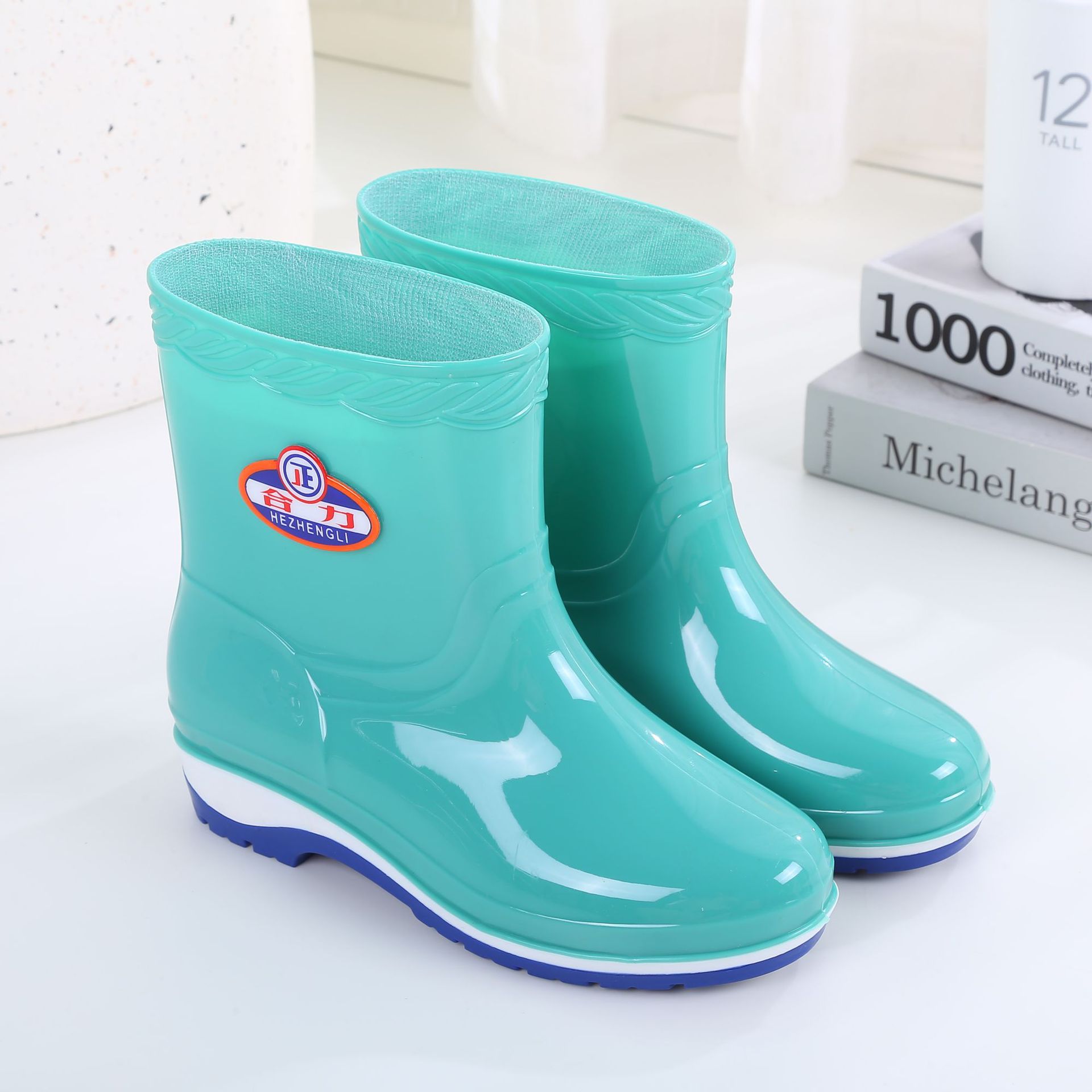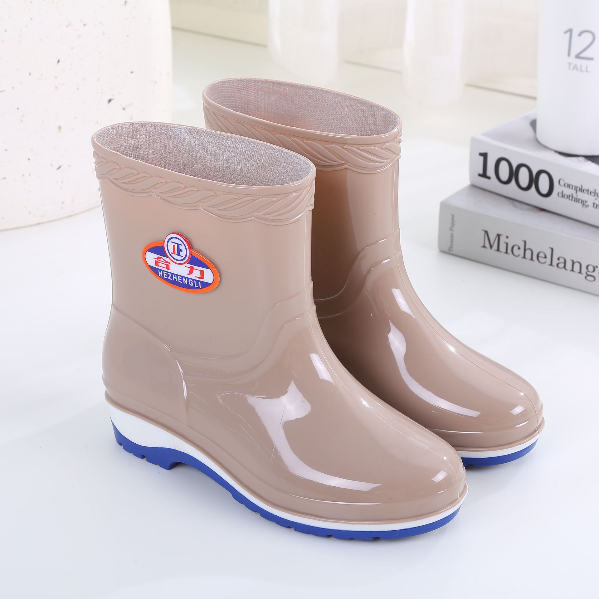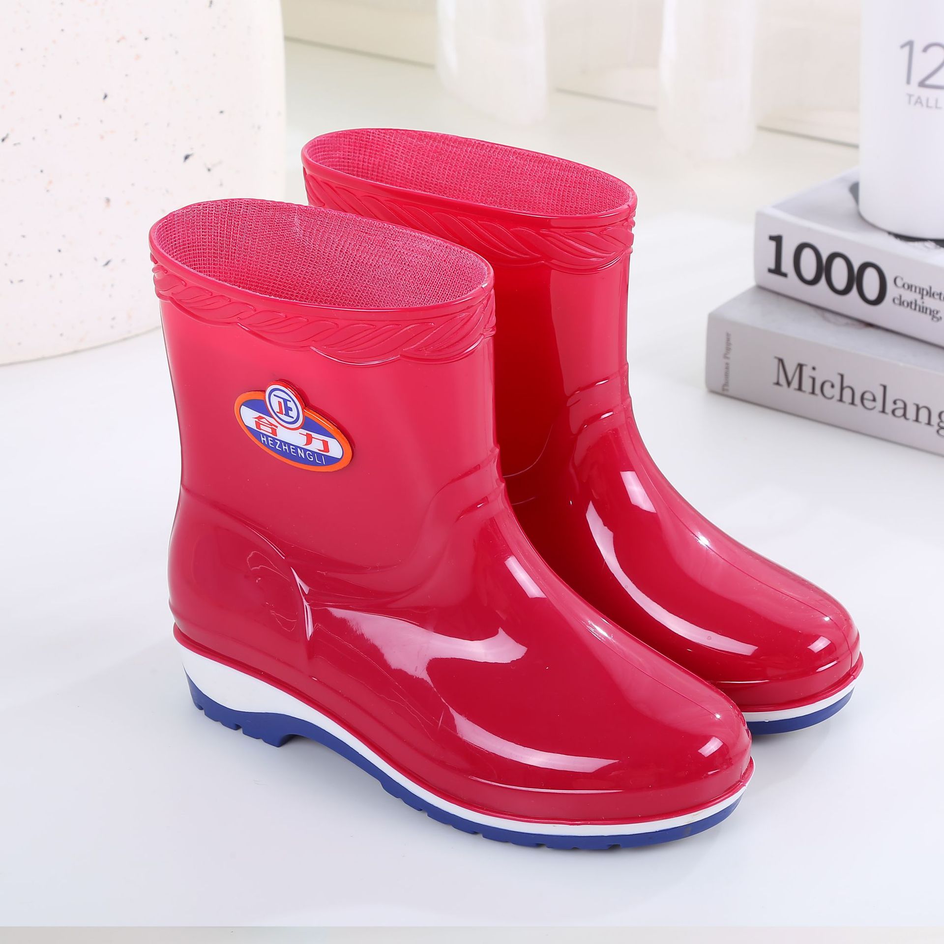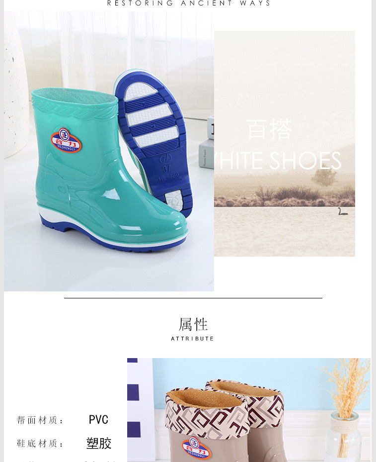 패션 미드 배럴 미끄럼 방지 레인 부츠 여성용 성인 작업 워터 부츠 방수 내마모성 레인 부츠 도매 주방 물 신발 고무 신발 여름스토어 가기