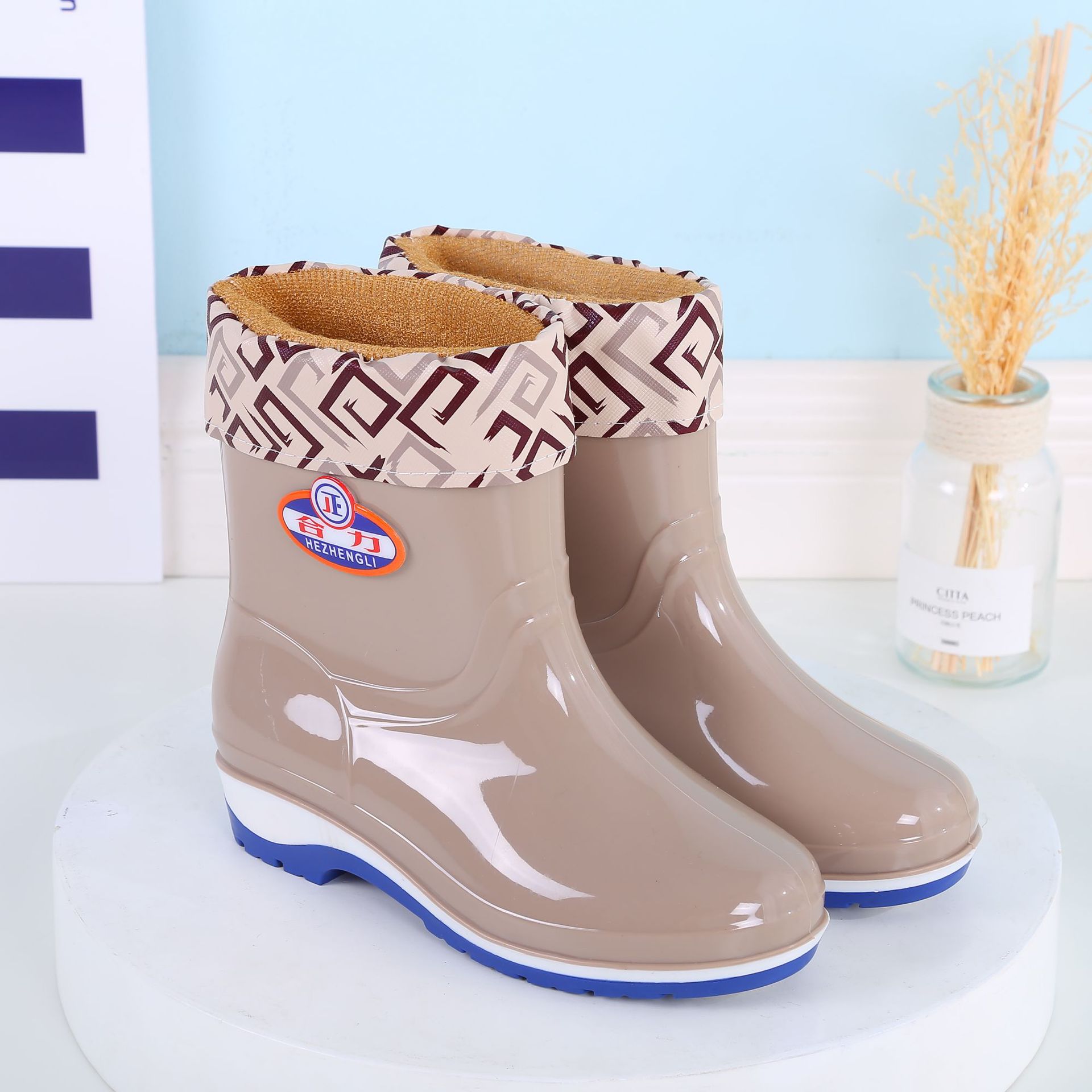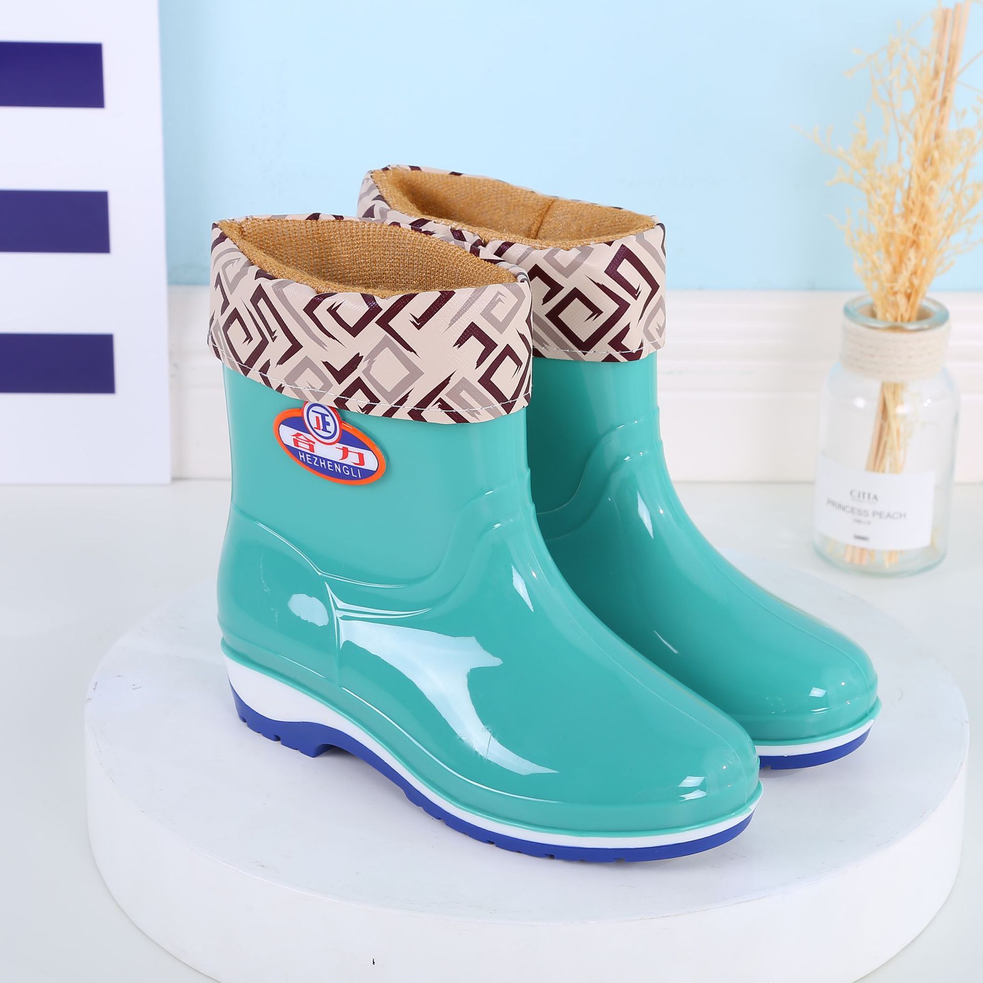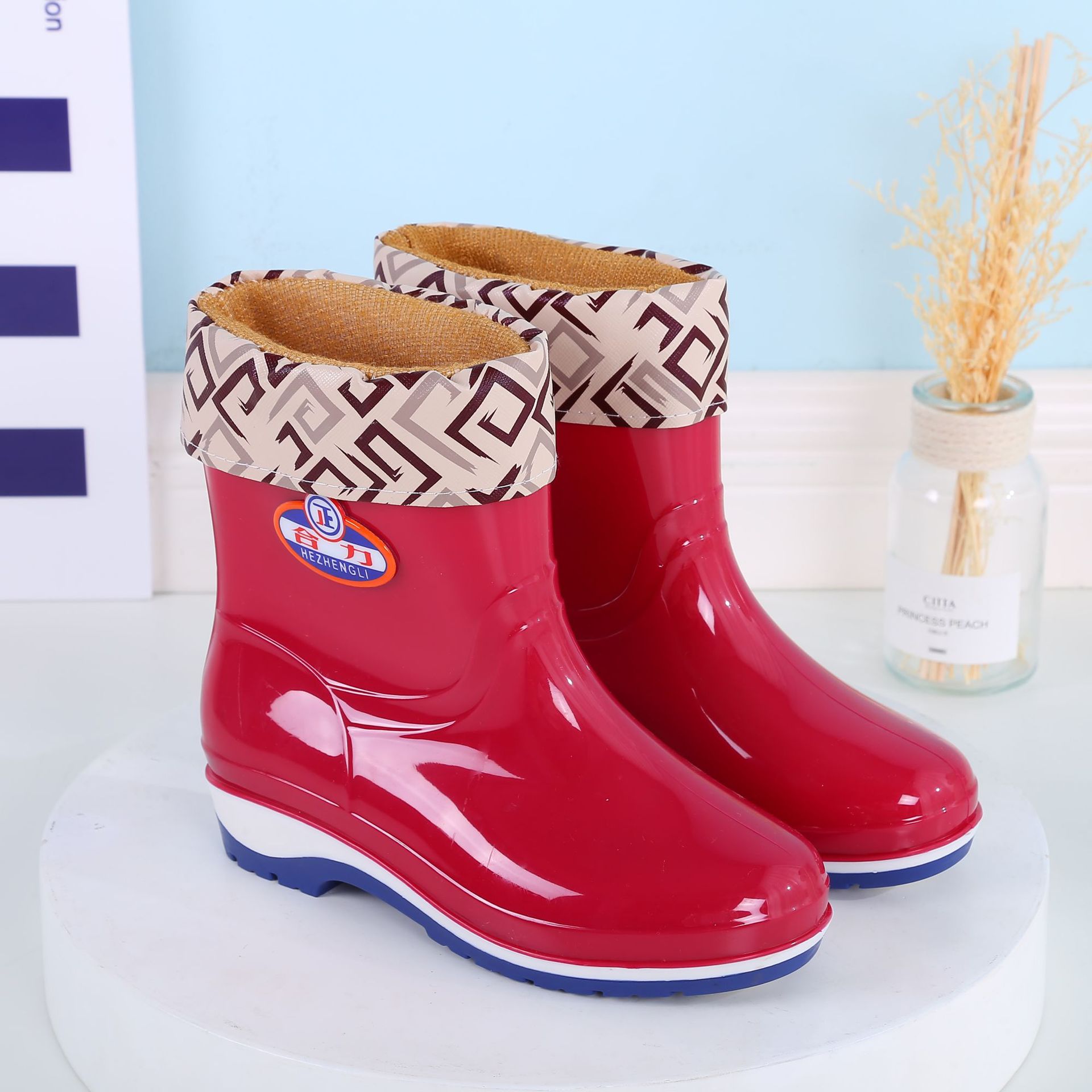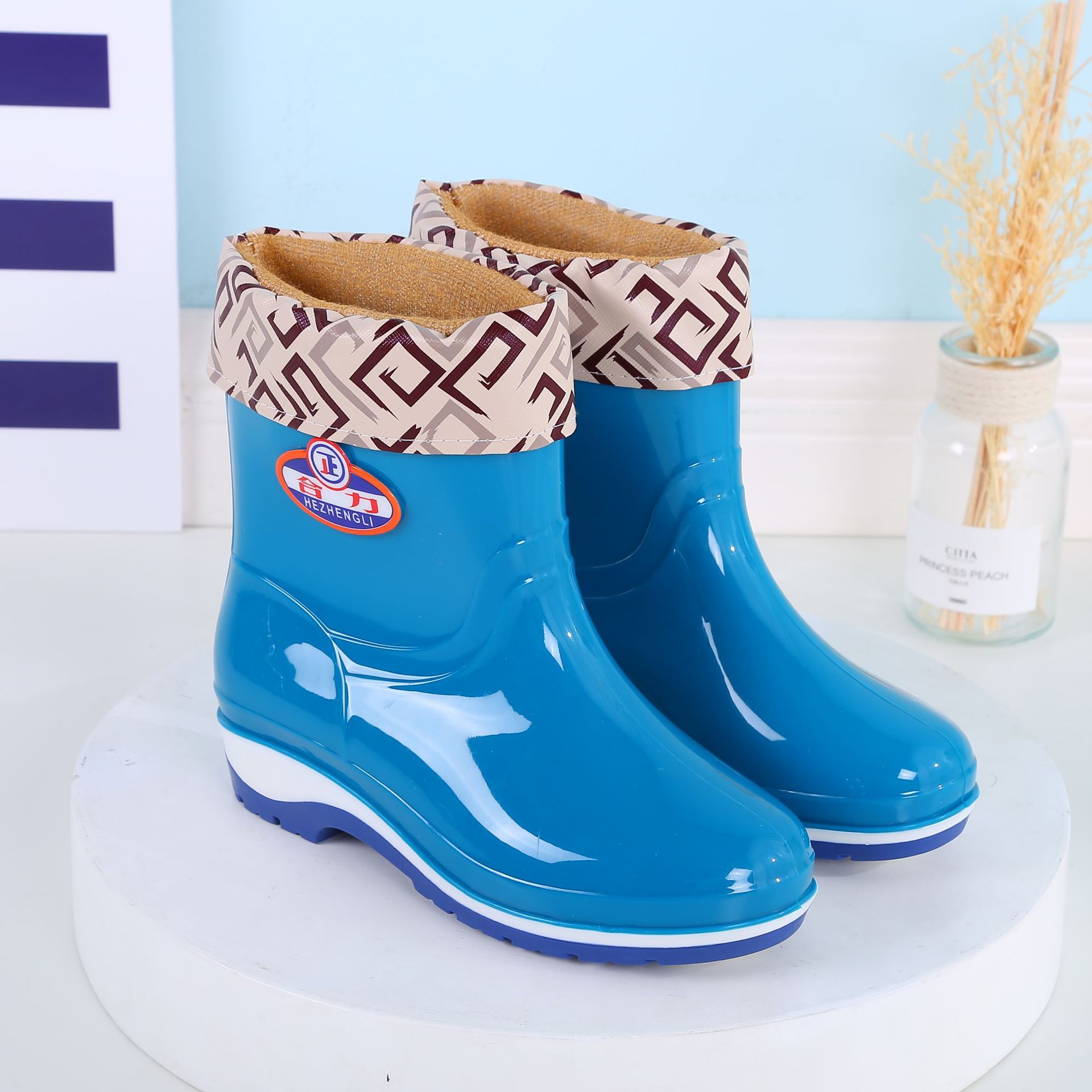 패션 미드 배럴 미끄럼 방지 레인 부츠 여성용 성인 작업 워터 부츠 방수 내마모성 레인 부츠 도매 주방 물 신발 고무 신발 여름스토어 가기
