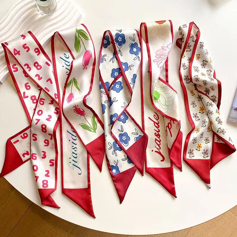 인기있는 색상 패션 봄과 가을 새로운 우아한 작은 실크 스카프 여자의 프랑스 스타일 머리띠 장식 스카프 다기능 리본스토어 가기
