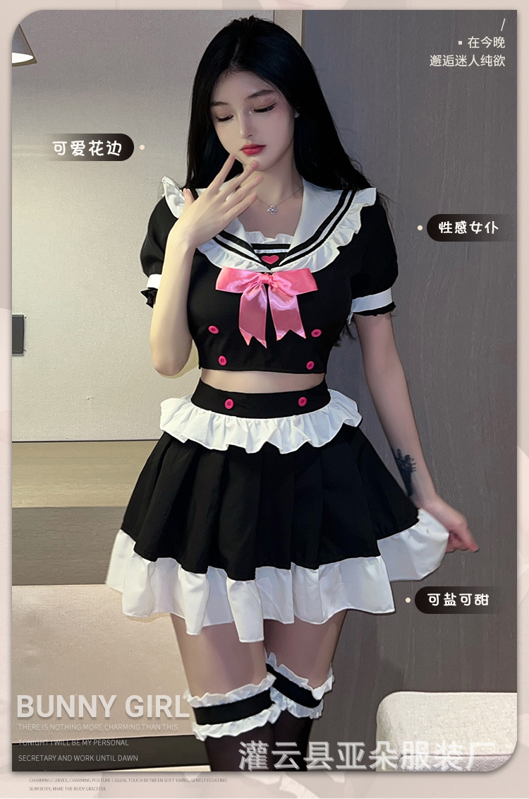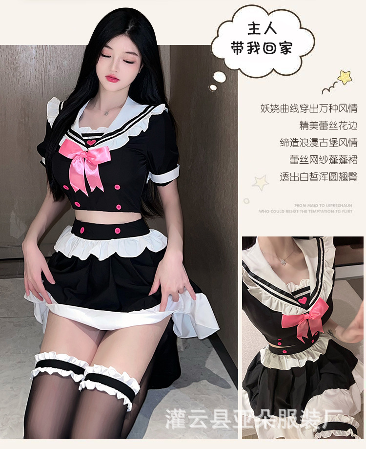 섹시한 속옷 메이드 유니폼 애타게 옷 레이스 세트 귀여운 노 열정 유혹 잠옷 2508-1
